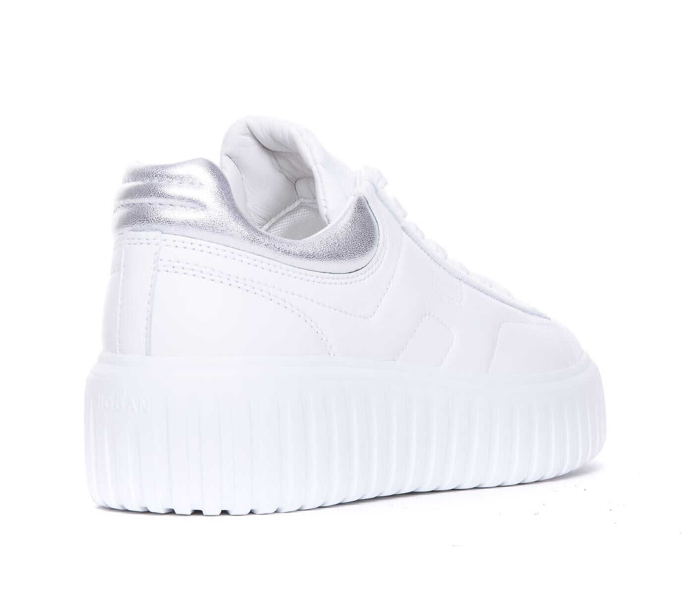 Hogan White H-Stripes Sneakers, Round Toe, Lateral Tone On Tone Logo, Leather Upper, Platform: 5 cm