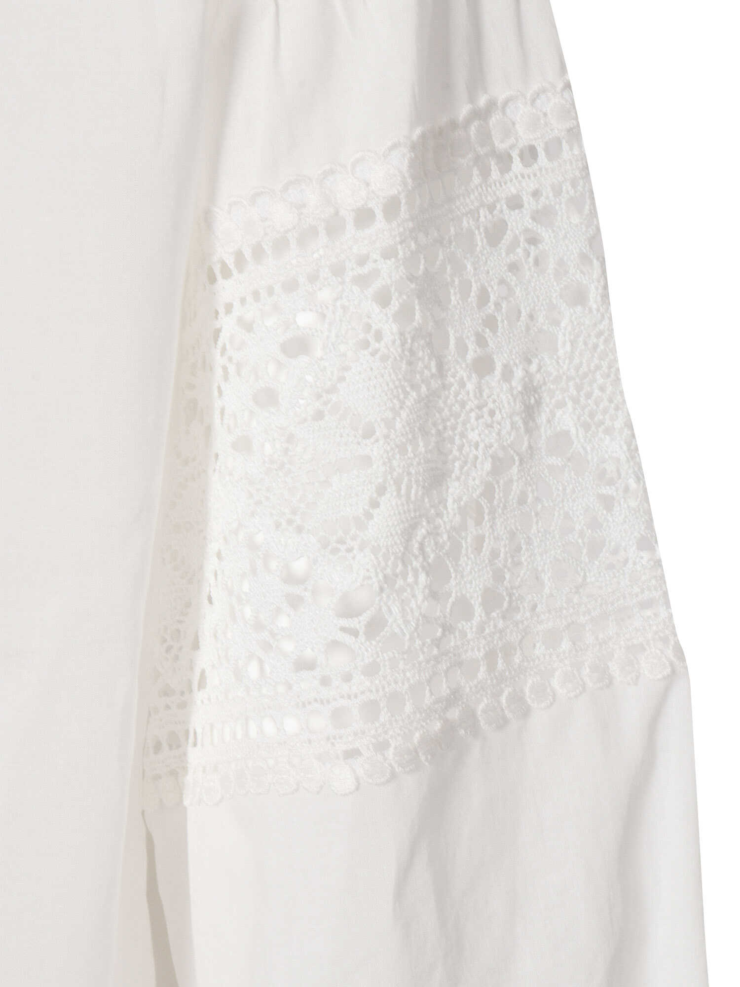 Ermanno Firenze white shirt in cotton with lace inserts, long balloon sleeves, neckline with coulisse closure and napppines.
