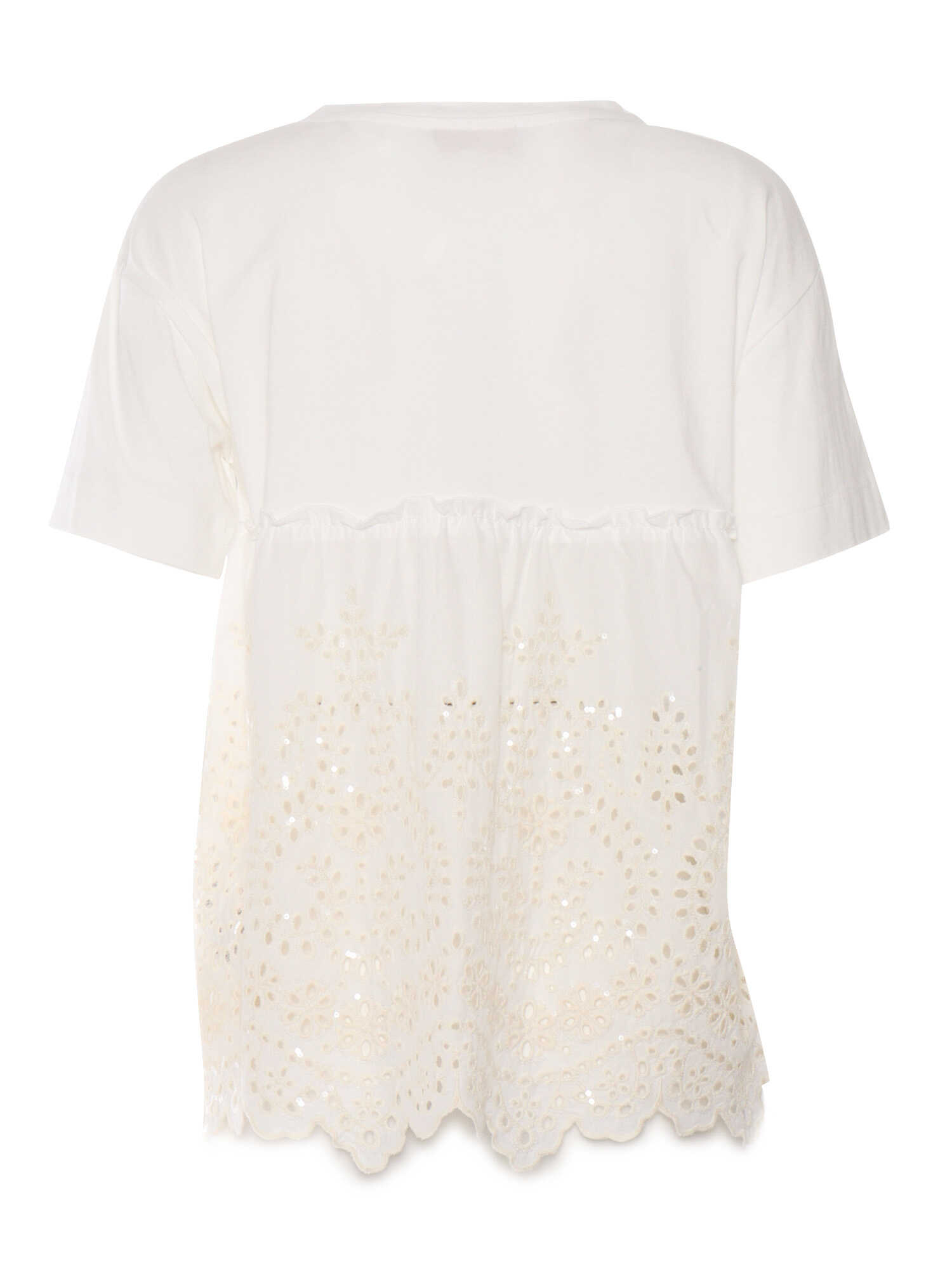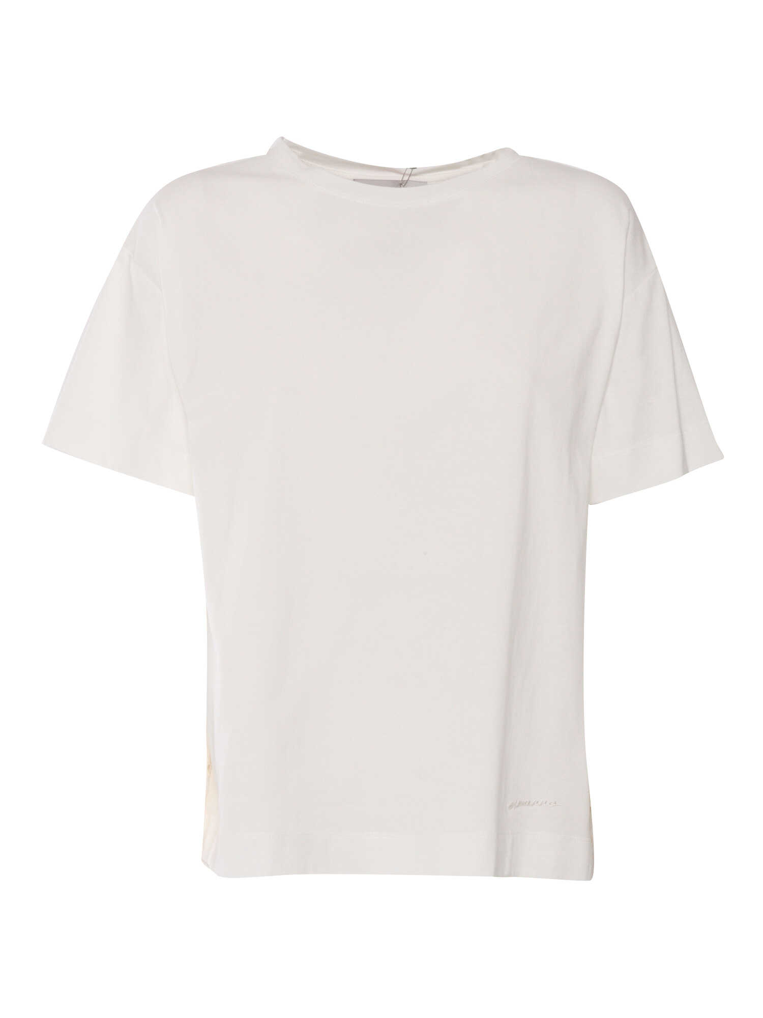 T-shirt Ermanno Firenze girocollo con logo brand di paillettes sul davanti a contrasto, 100% cotone.T-SHIRT