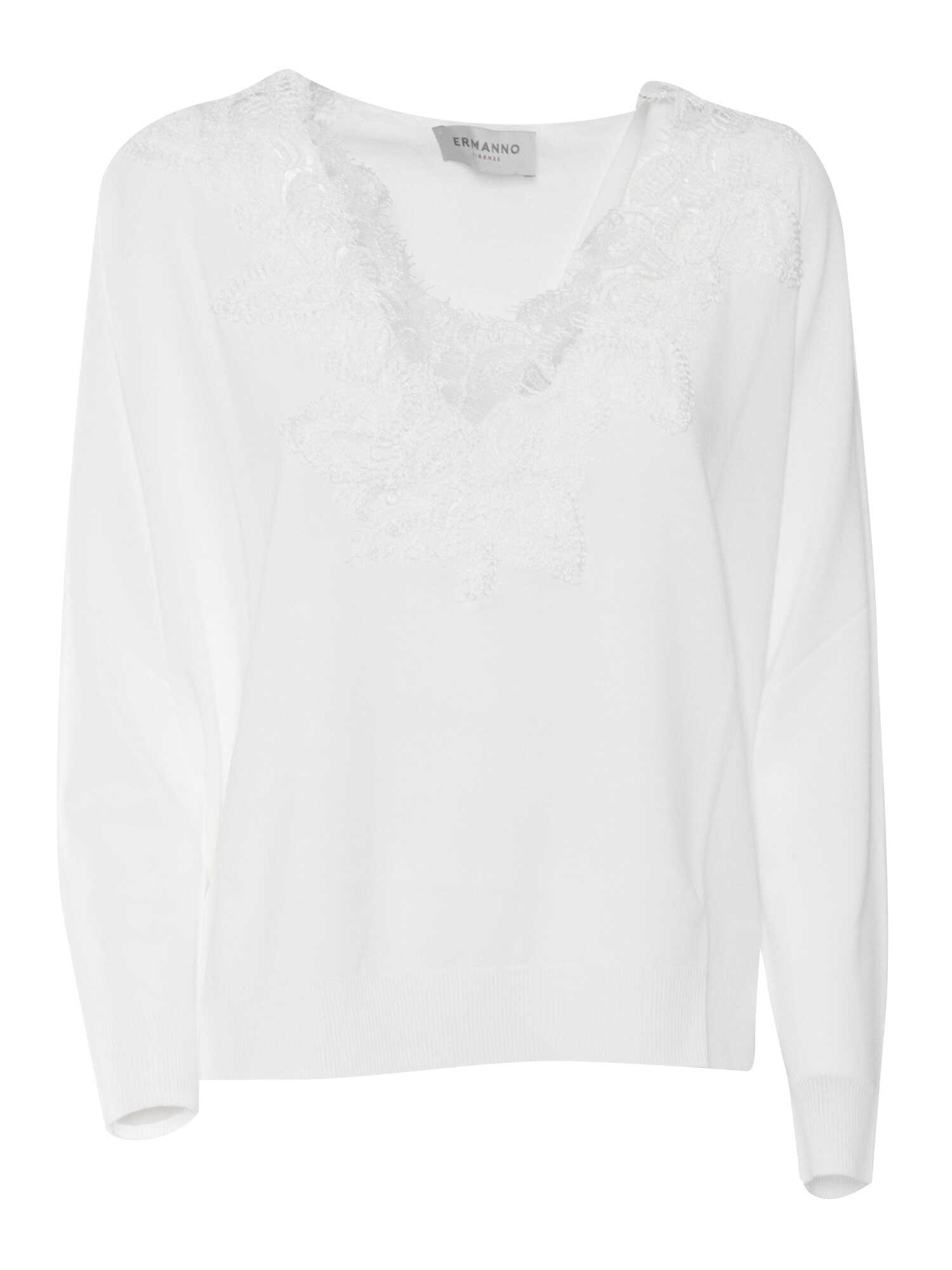 White shirt with lace, V -neck, long sleeves, viscose mix and polyamideM/L V SWEATER