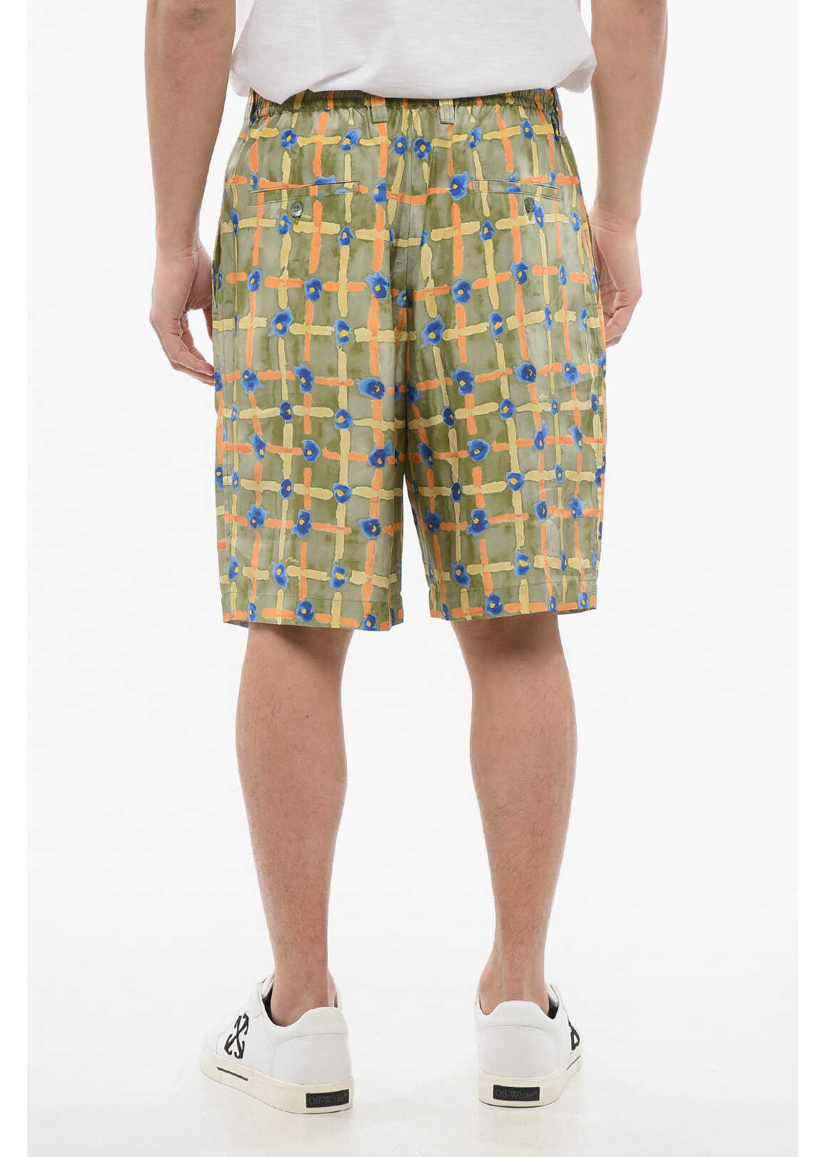 Silk Belt loops 4 pockets Elastic waistline Zip closure Buttons Printed pattern Front closure Normal waisted Flat front Green Made in Italy Spring-Summer Materials: 100%SE Product code: P640445 Model is wearing size 48 Model measurements Height: 182 cm Chest: 96 cm Waist: 79 cm Hips: 95 cm