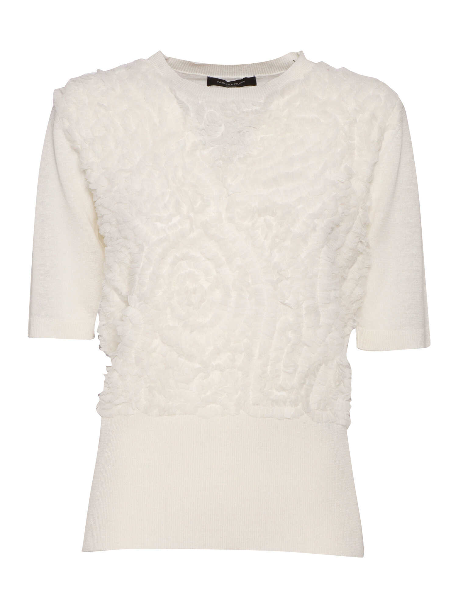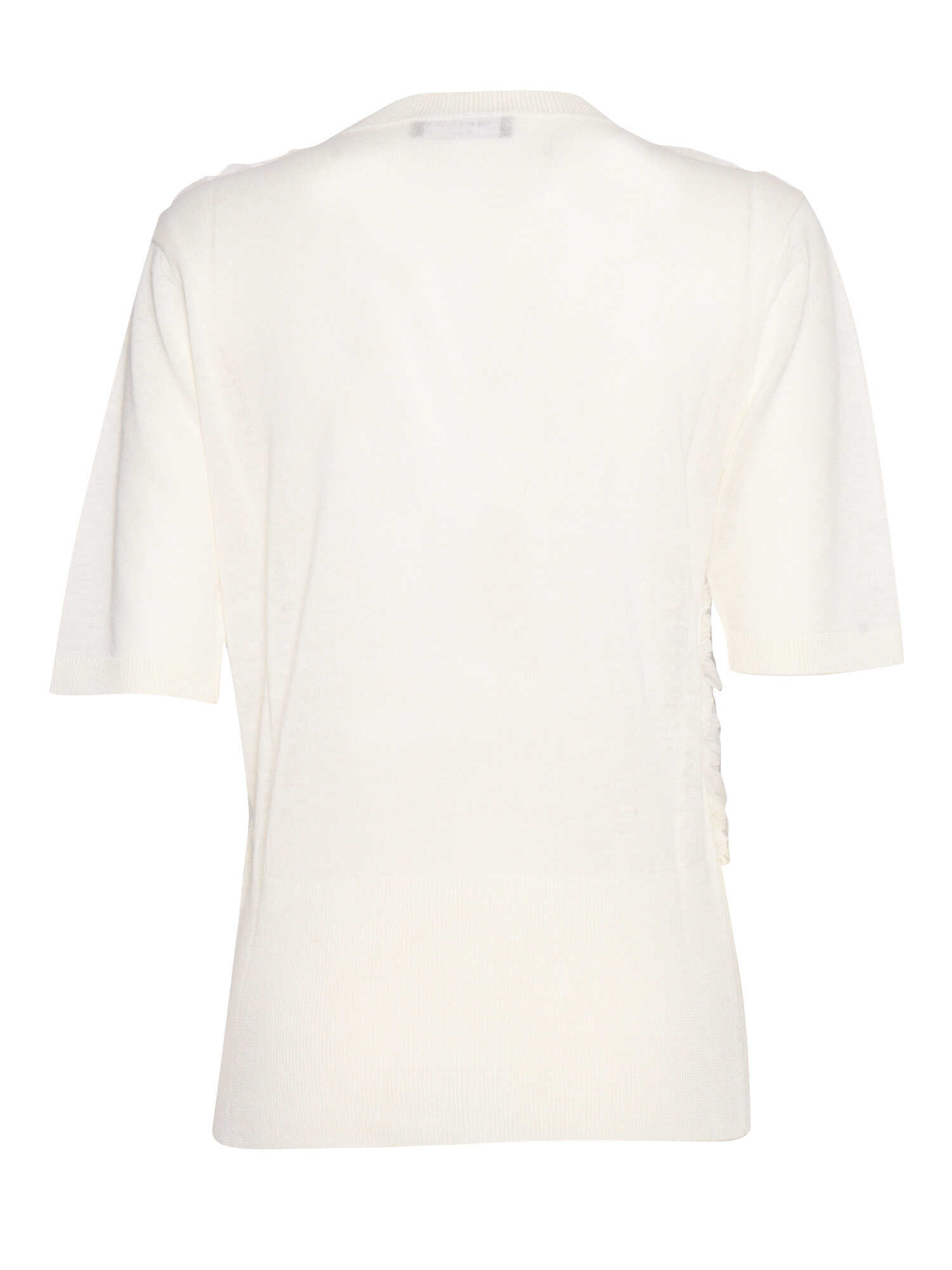 LIGHTWEIGHT LINEN SHORT SLEEVE SWEATER, ROUCHE EMBROIDERY