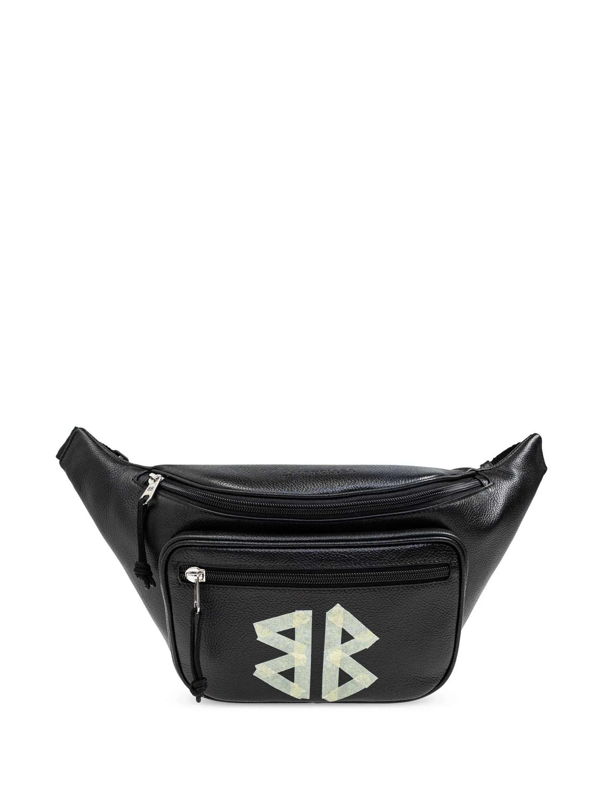 black logo print to the front two zip-fastening pockets adjustable fit