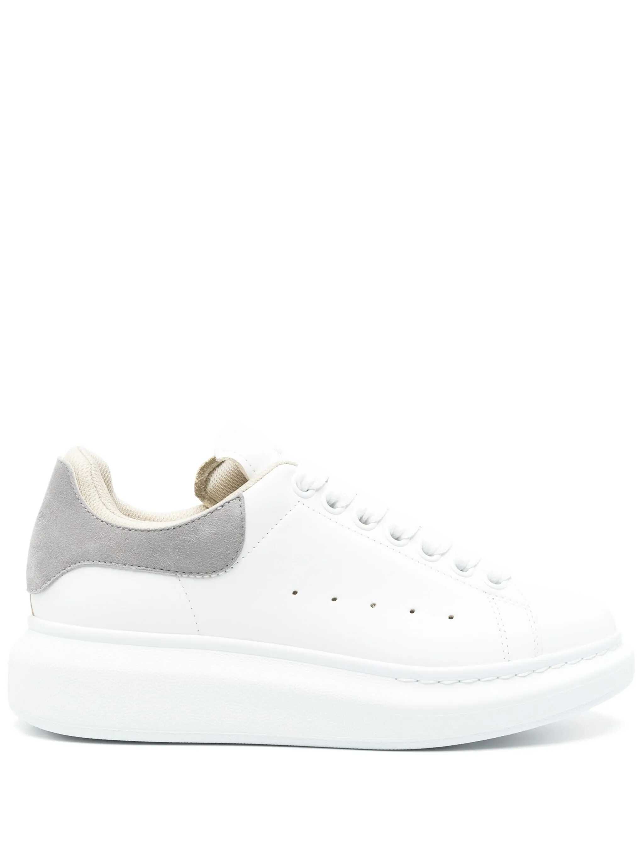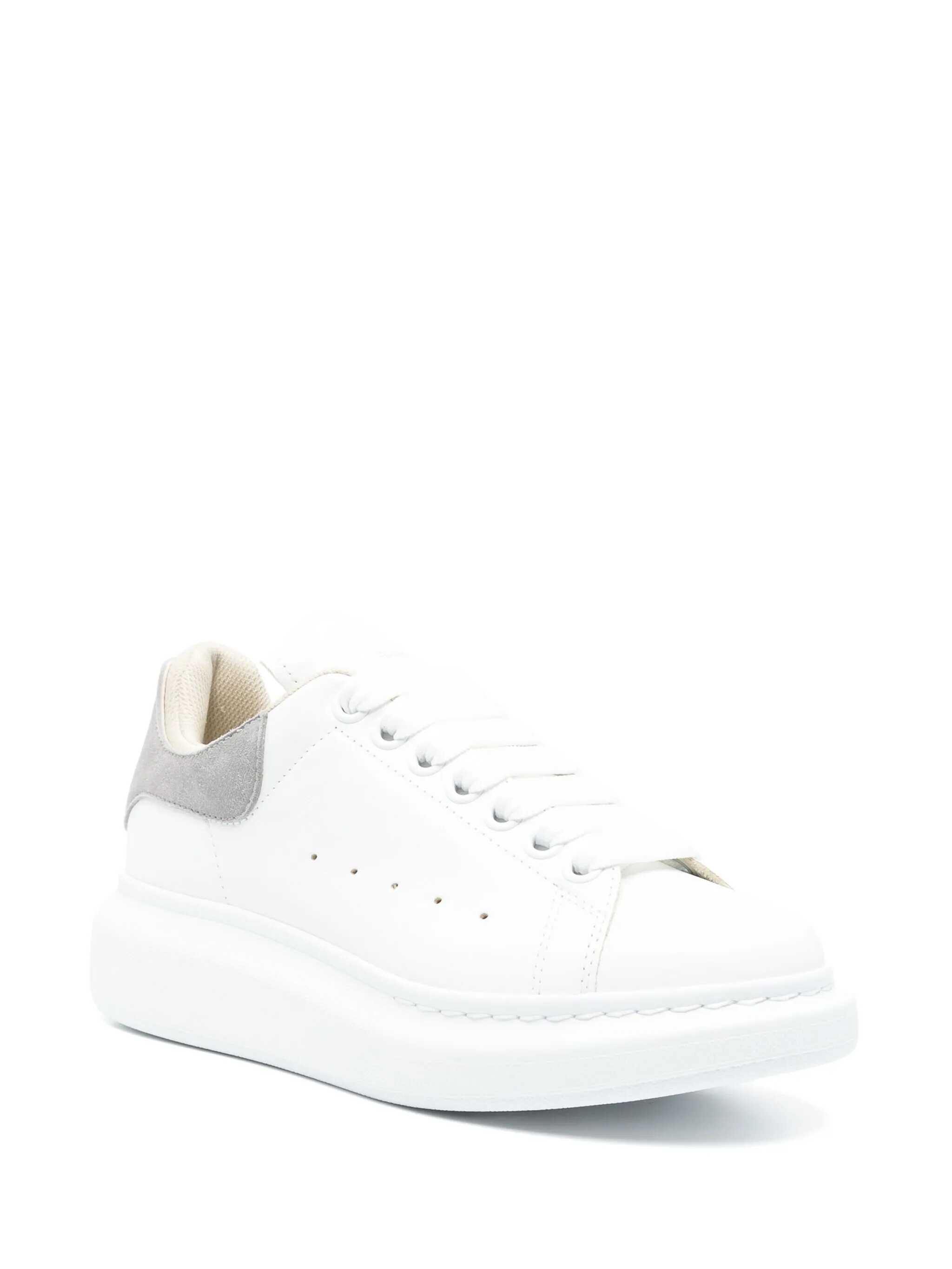 White leather sneakers with grey suede heel
