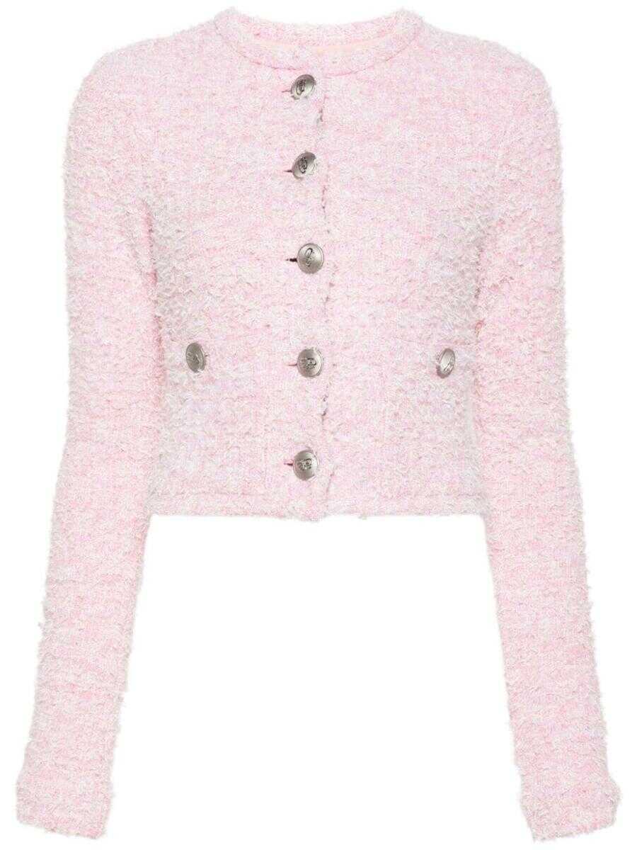 blush pink cotton blend tweed round neck long sleeves two side button-fastening pockets logo-embossed buttons front button fastening straight hem