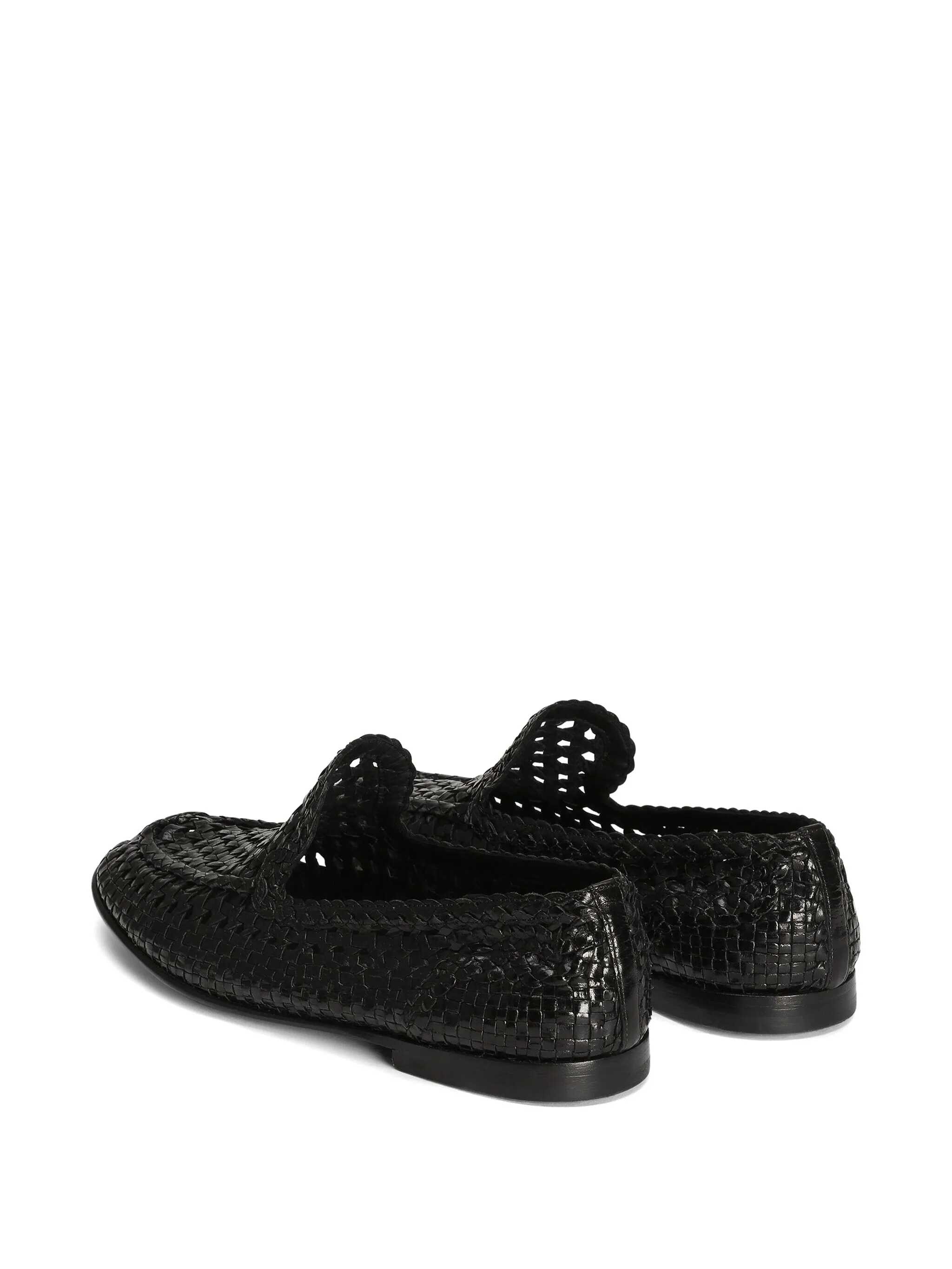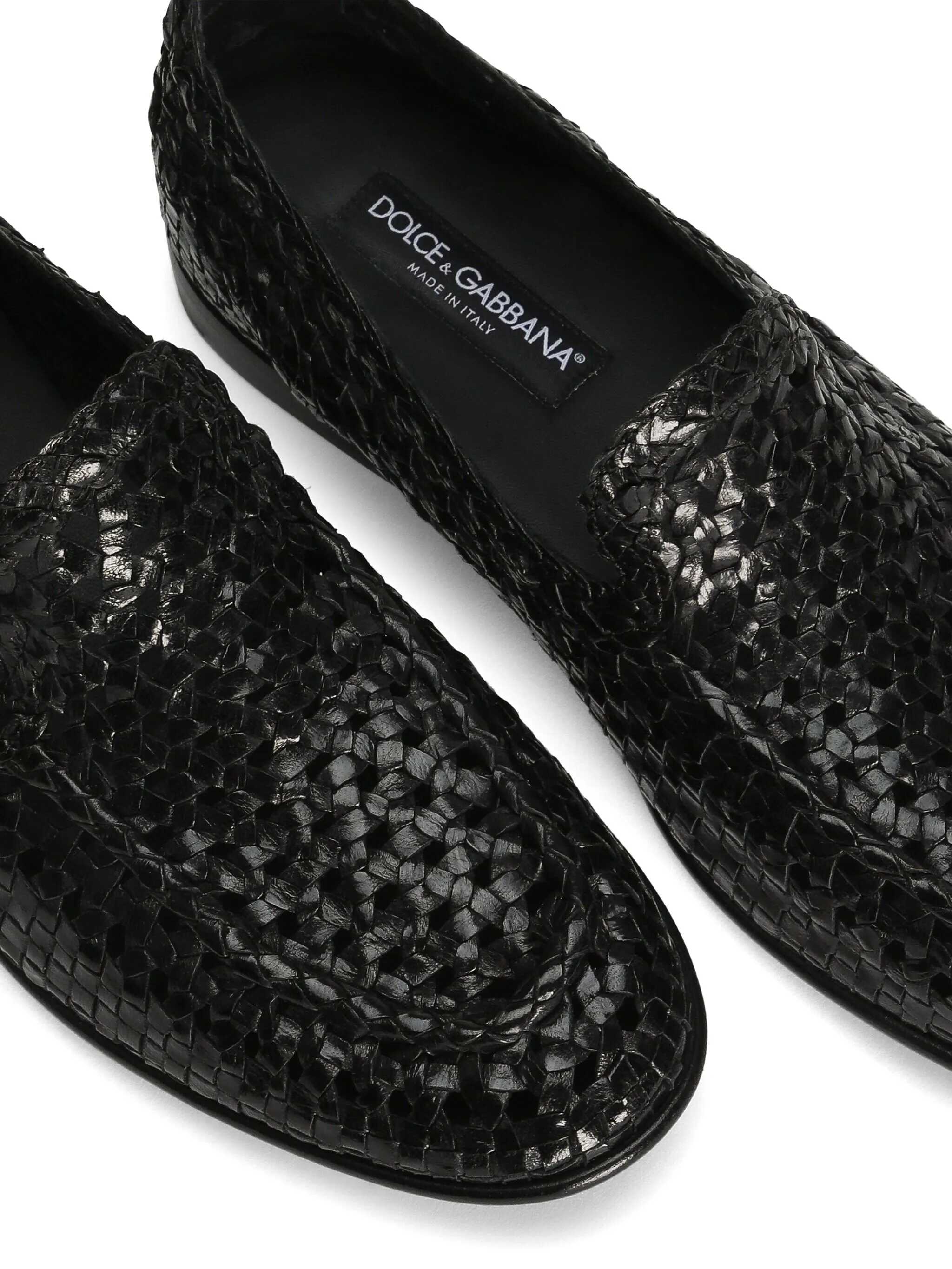Slipper from the DG Evening line in shiny goatskin woven Color black Upper in woven goatskin Leather insole with logo label Leather sole with logo