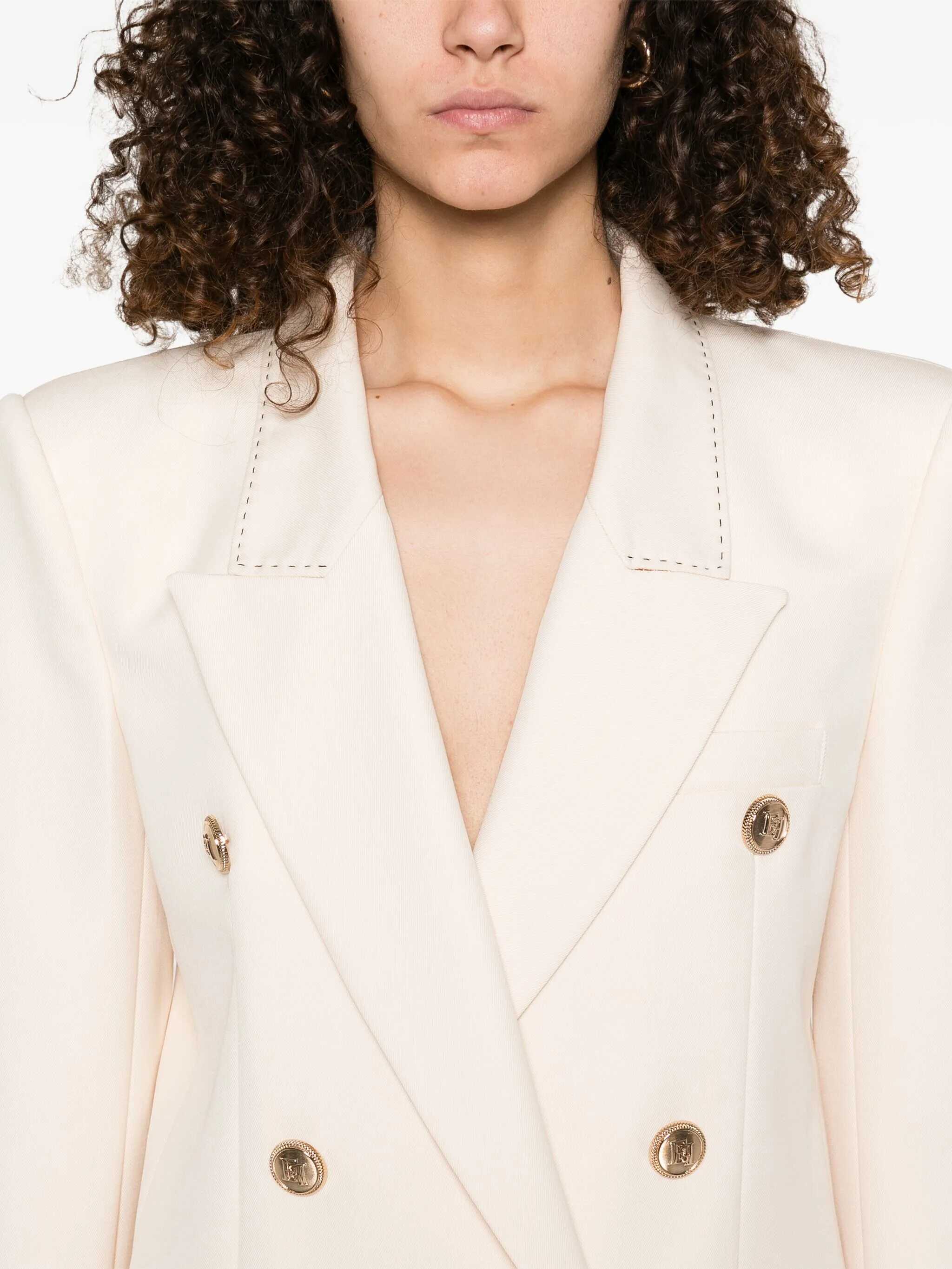 Light beige double-breasted button fastening buttoned-cuff sleeves central rear vent two front flap pockets