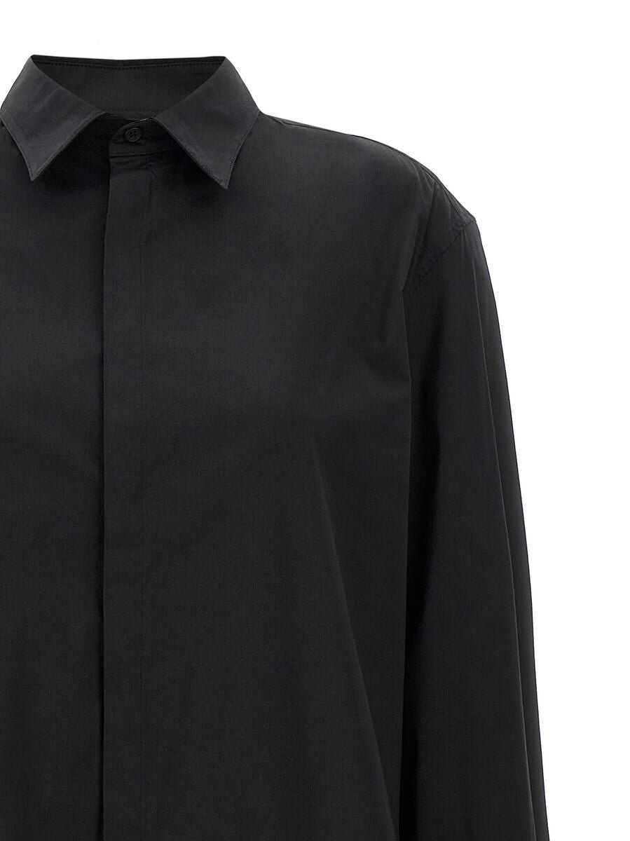 Chemisier dress in cotton blend, asymmetrical hem, button closure, long cuffed sleeves and embossed logo