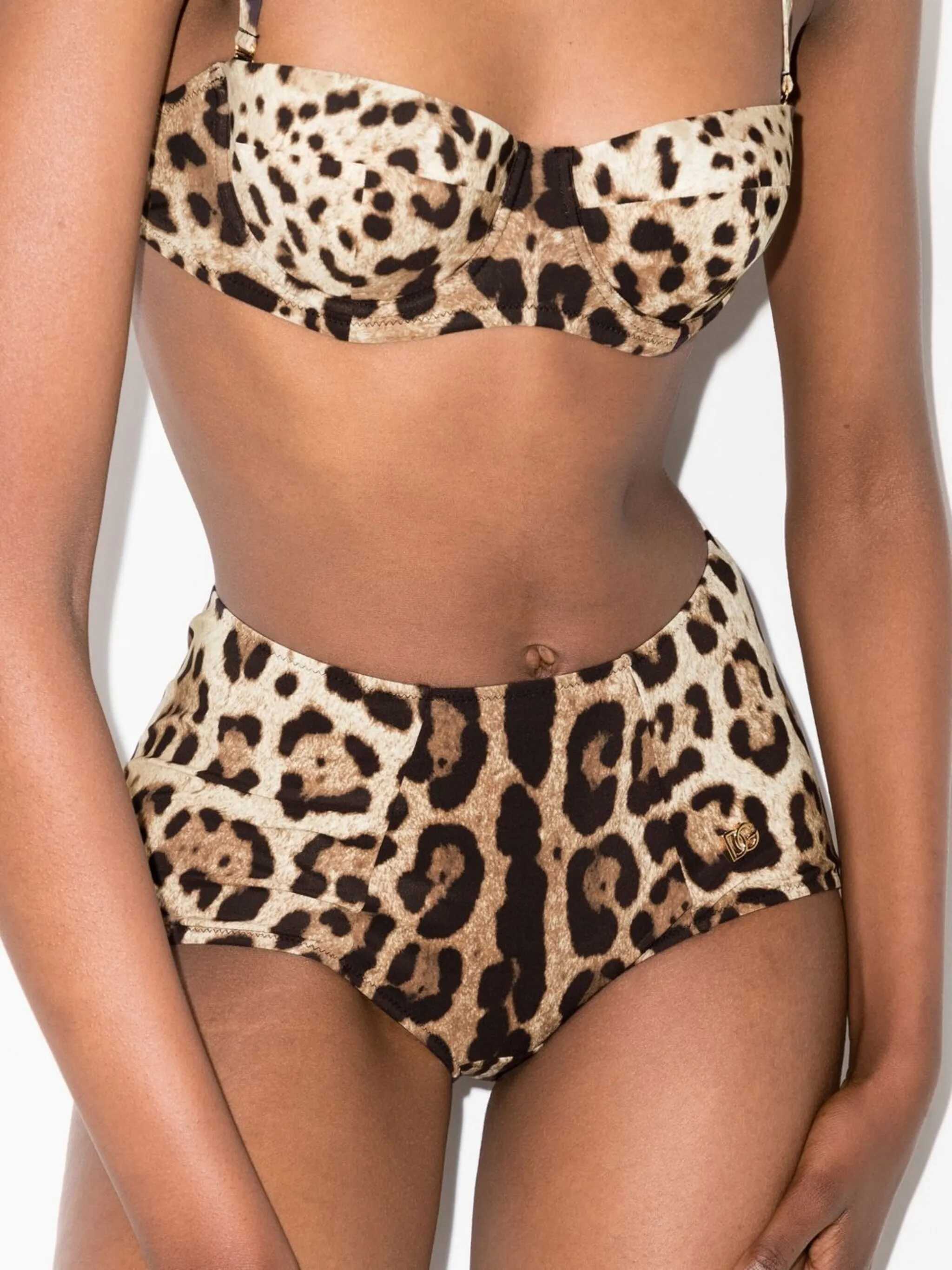 Dolce & Gabbana high-waist animal print briefs with gold metal logo application