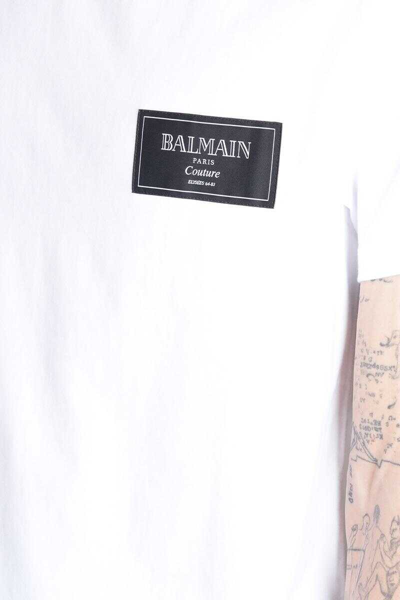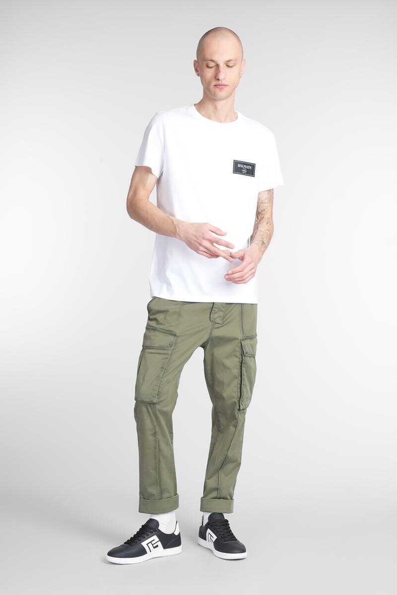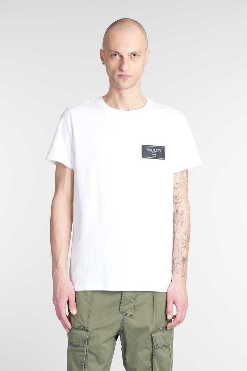 T-Shirt in white cotton, round neck, short sleeves, logo patch on chest, straight hem, slim fit, 100% cotton, Made in Italy, the models is 1.91 and wears size L