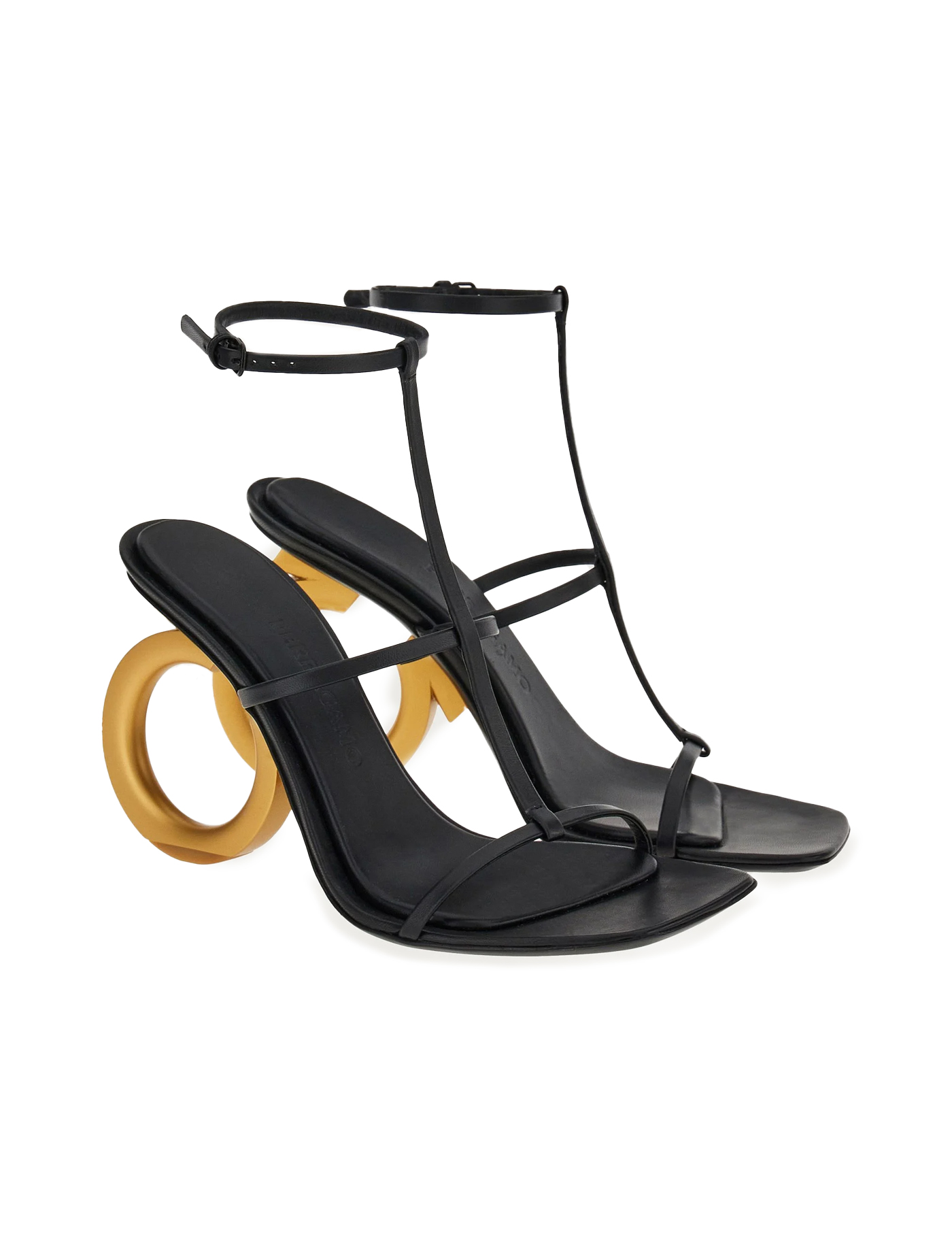 Step out in style with the Salvatore Ferragamo Elina Leather Sandals. These black sandals are made from 100% calf leather and feature a leather lining, insole, and sole. With an ankle side buckle fastening and a decorative gold heel measuring 10.5 cm / 4.1 in, these sandals are both fashionable and comfortable. The branded insole adds a touch of luxury, making these sandals a must-have for any fashion-forward woman. Elevate your shoe game with Salvatore Ferragamo!
