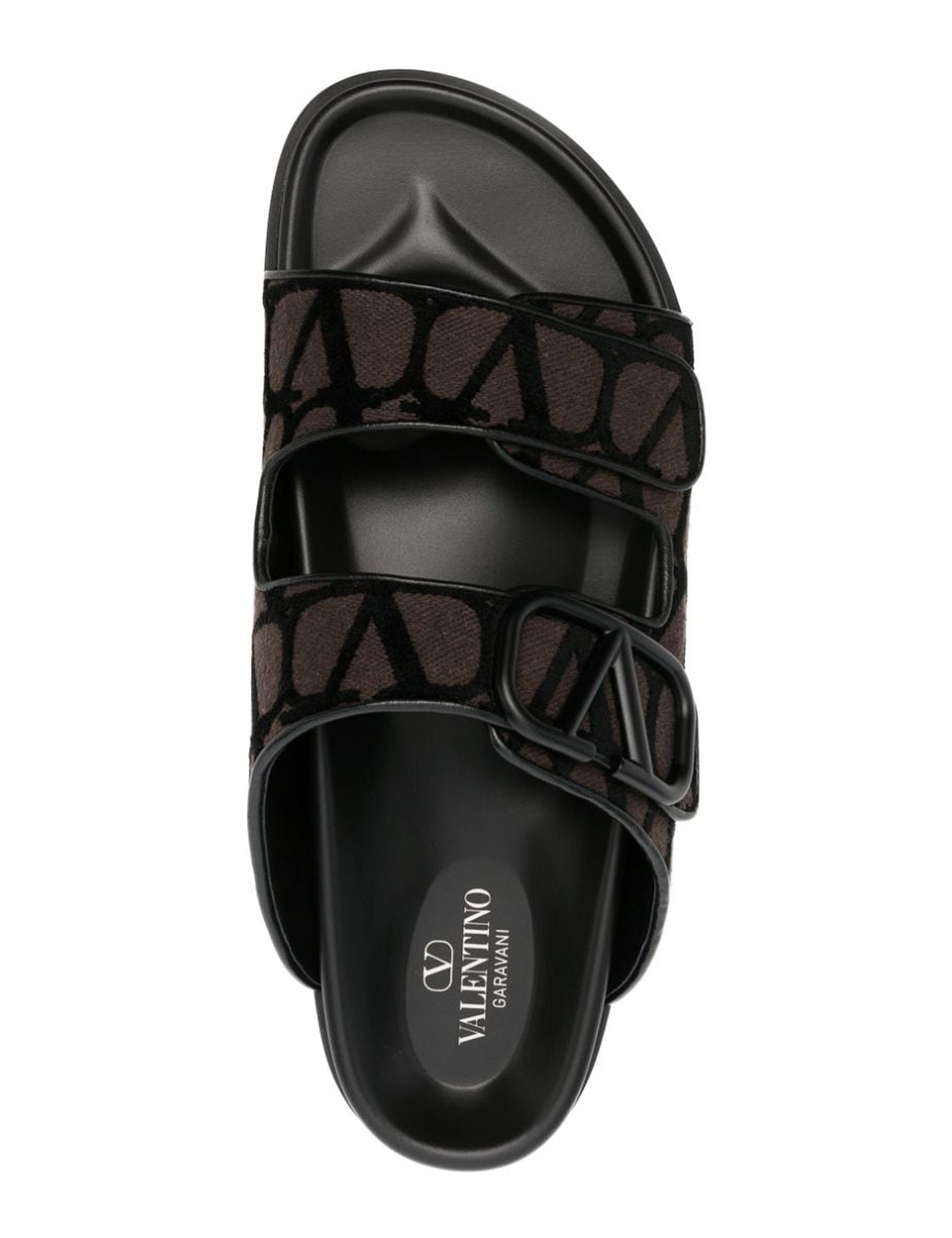 Slides by Valentino Garavani crafted in Toile Iconographe fabric with applied VLogo Signature detail. Leather anatomical footbed and rubber sole.