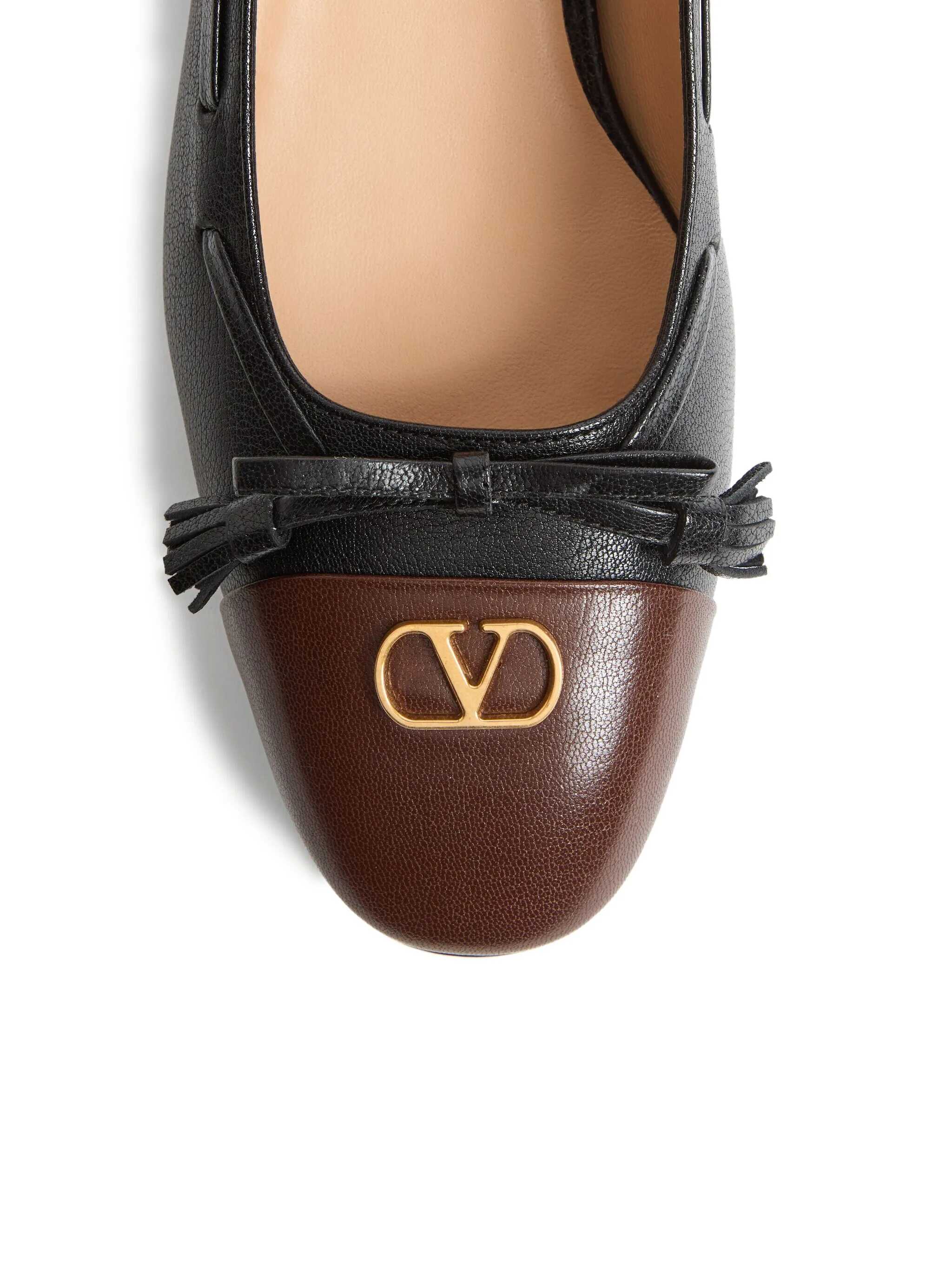 'Valet Du Roi' two-tone leather ballet flat, VLogo Signature metallic antiqued effect and bow with front tassels, square toe model, leather sole