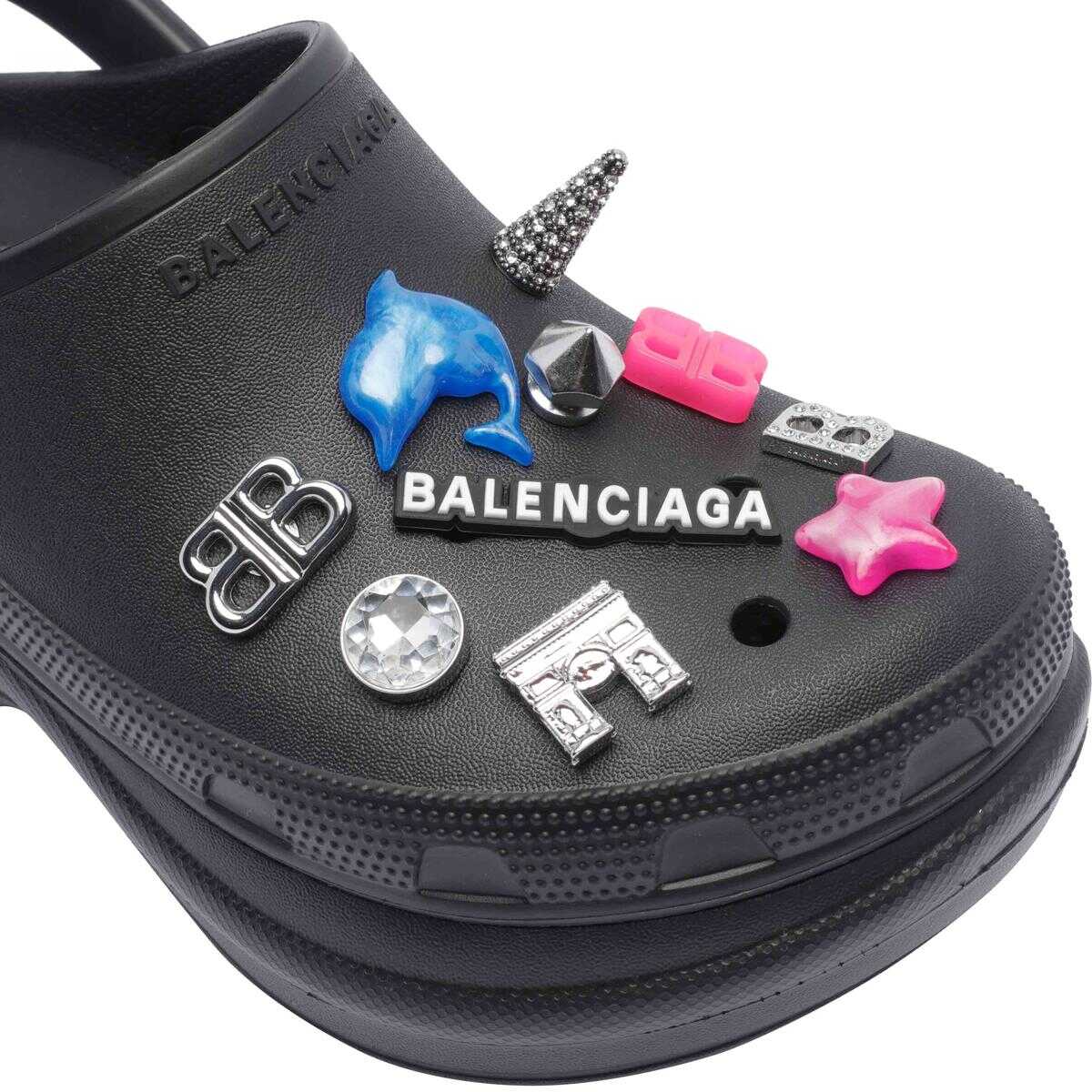 Balenciaga Black Jibbitz™ Sabot Crocs™ , Charms Allover, Round Toe, Frontal Tone On Tone Logo, Rubber Upper, EU SIZE (IT)