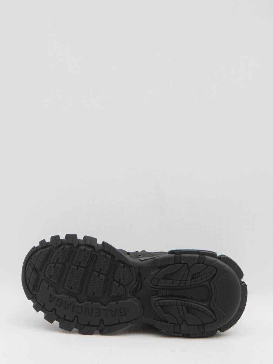 Track Trail Laces sneakers in black polyurethane, polyester, and nylon. They feature a double-laced closure tied using the hiking method, orange rope laces with a closure at the back, size written in white on the toe, printed logo on the outer side and tongue, embossed track logo on the back of the heel, heel and tongue pull tabs, and a dynamic rubber sole. Dust bag included. Any imperfections are not considered manufacturing defects, but a characteristic of the material.