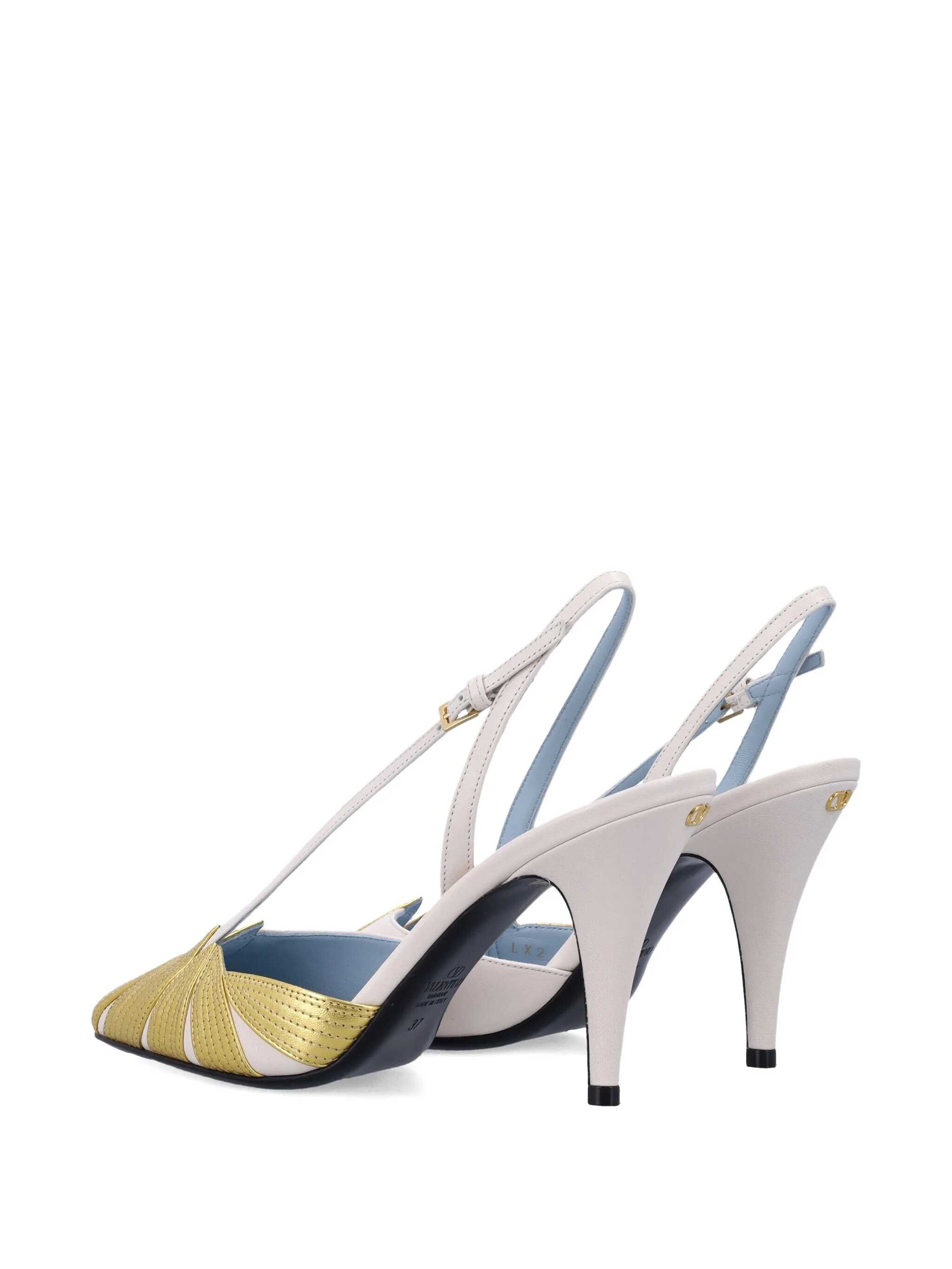 'Foliefoliage' leather slingbacks with laminated nappa leather leaf pattern, pointed toe, adjustable strap, heel with VLogo Signature metallic antiqued effect applied, leather sole