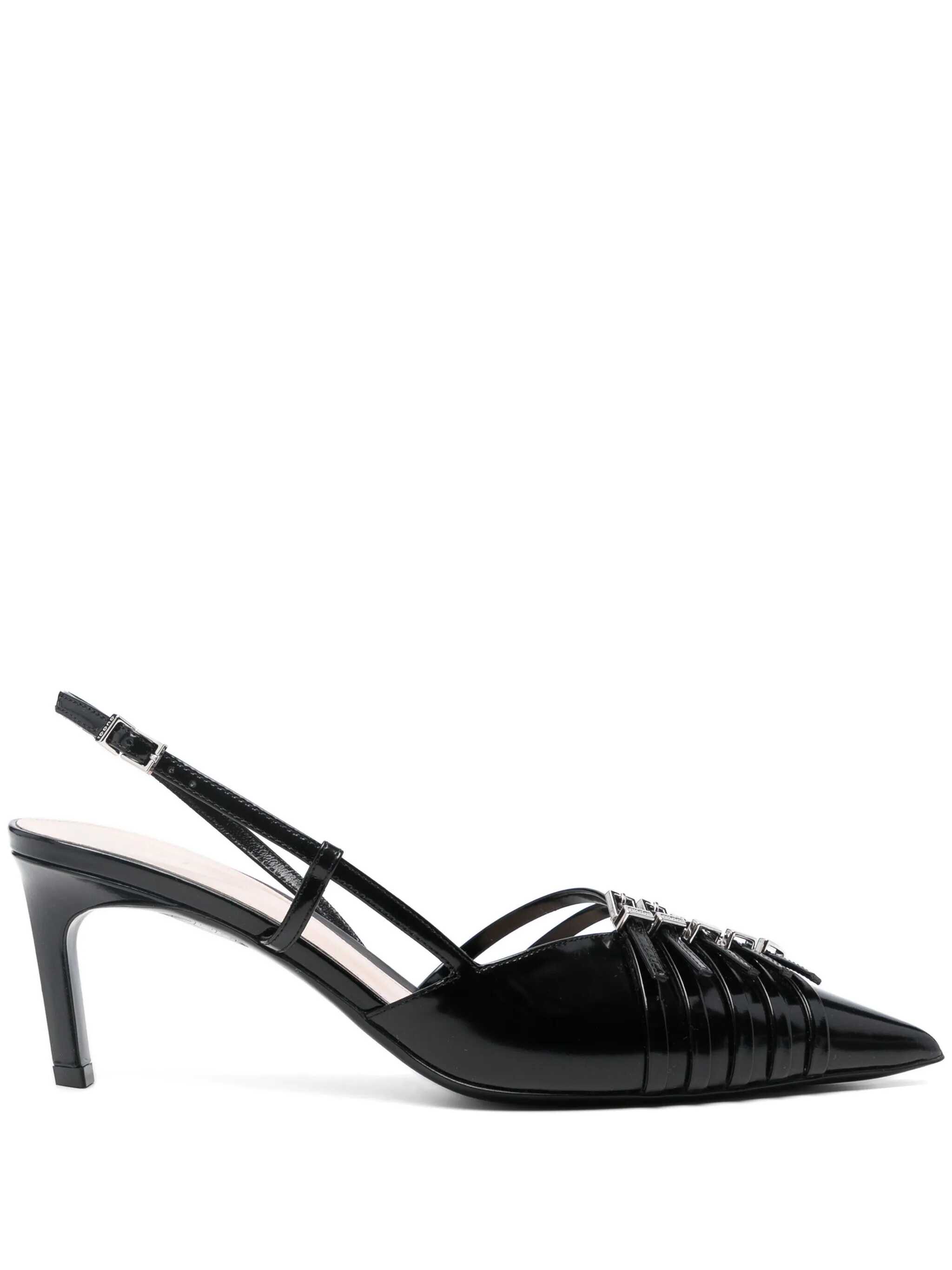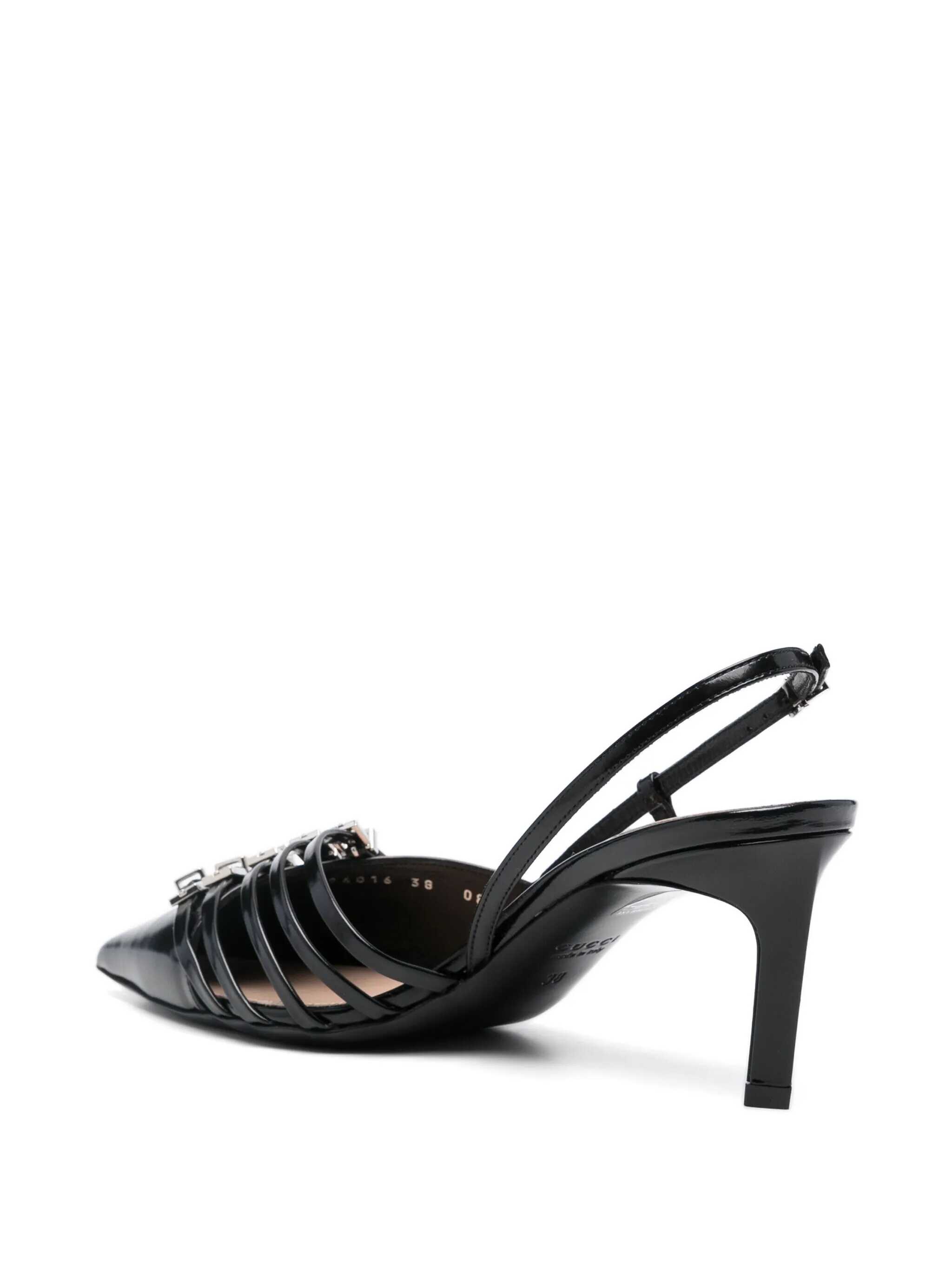 - Composition: 100% calf leather - Inner: Leather - Insole: Leather - Sole: Leather - Pointed toe - Patent effect - Heel 6,5 cm - Open back - Multi Gucci buckles - Adjustable ankle strap buckle closure - Mid-heel - Made in Italy - Gender: WOMEN - MPN 796016CLG00_1000 - Code: SHO GU 2 PM SS25 13088