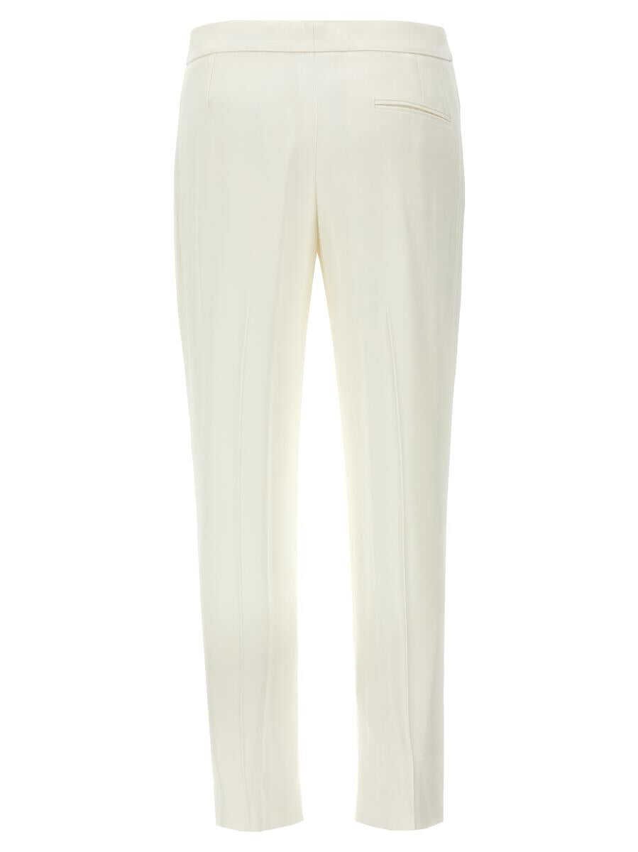Crepe pants, straight fit, mid waist, ironed front crease, pockets, front zip hook and button closure