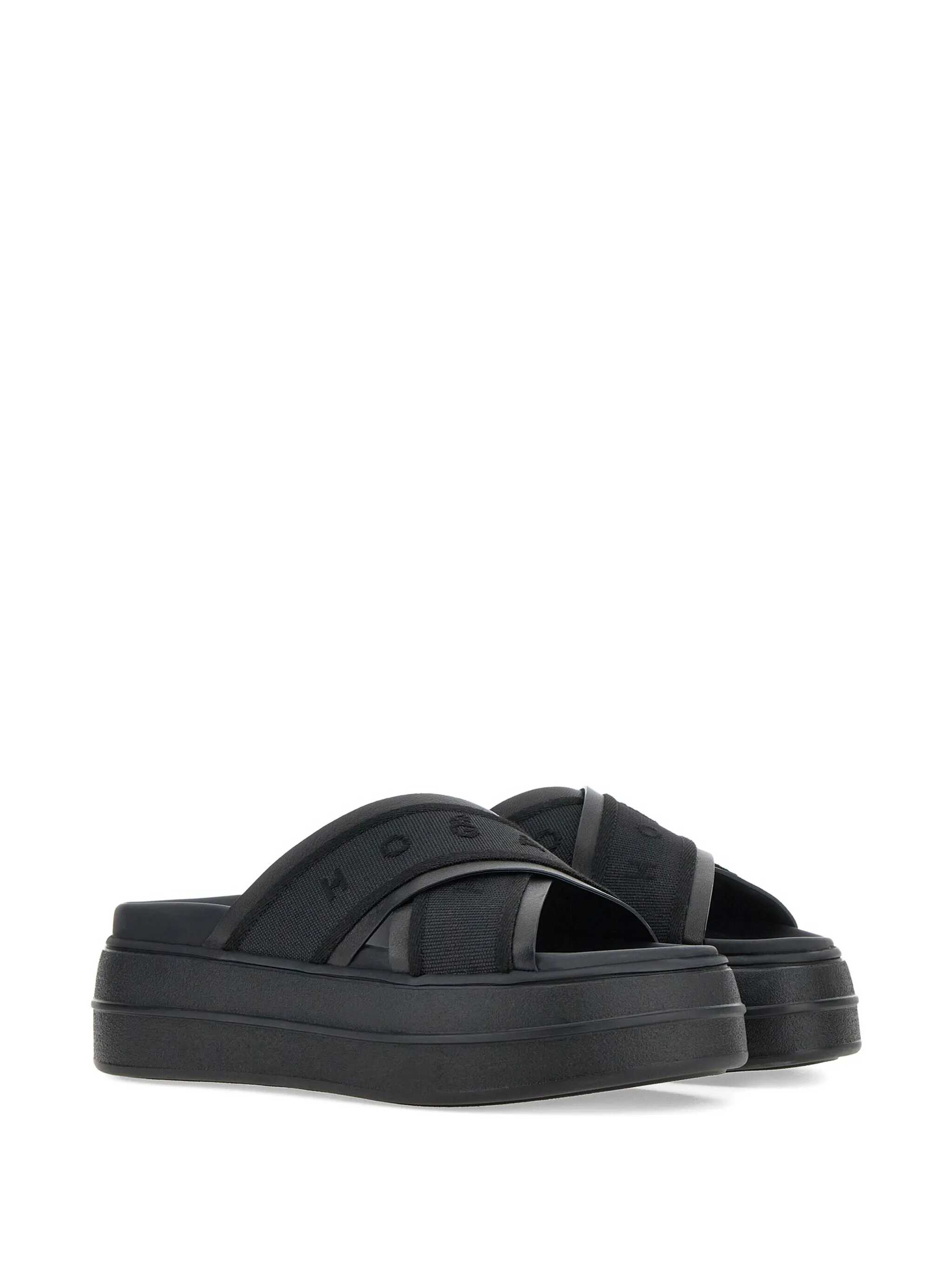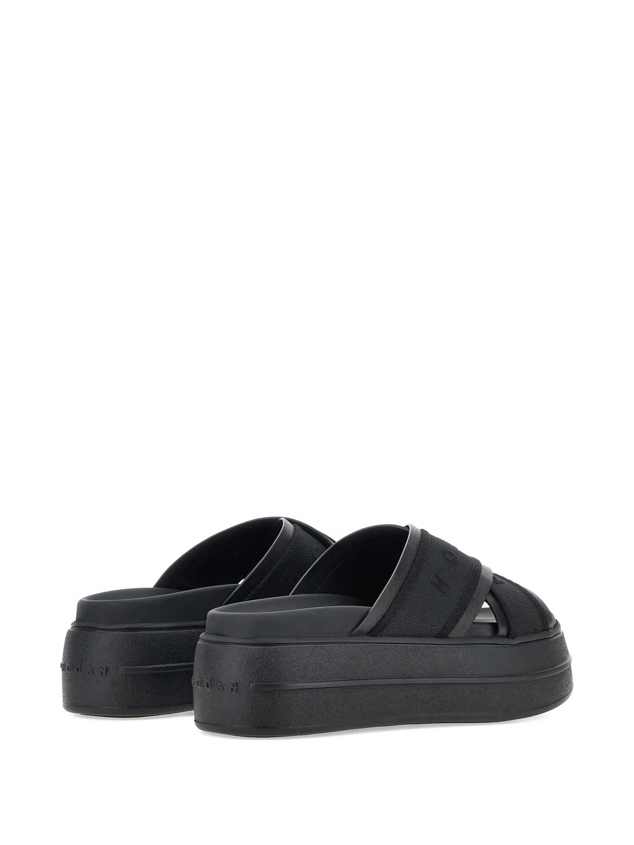 Hogan Black Sandals, Open Round Toe, Logo, Slip On, Plateau, Platform 5 cm