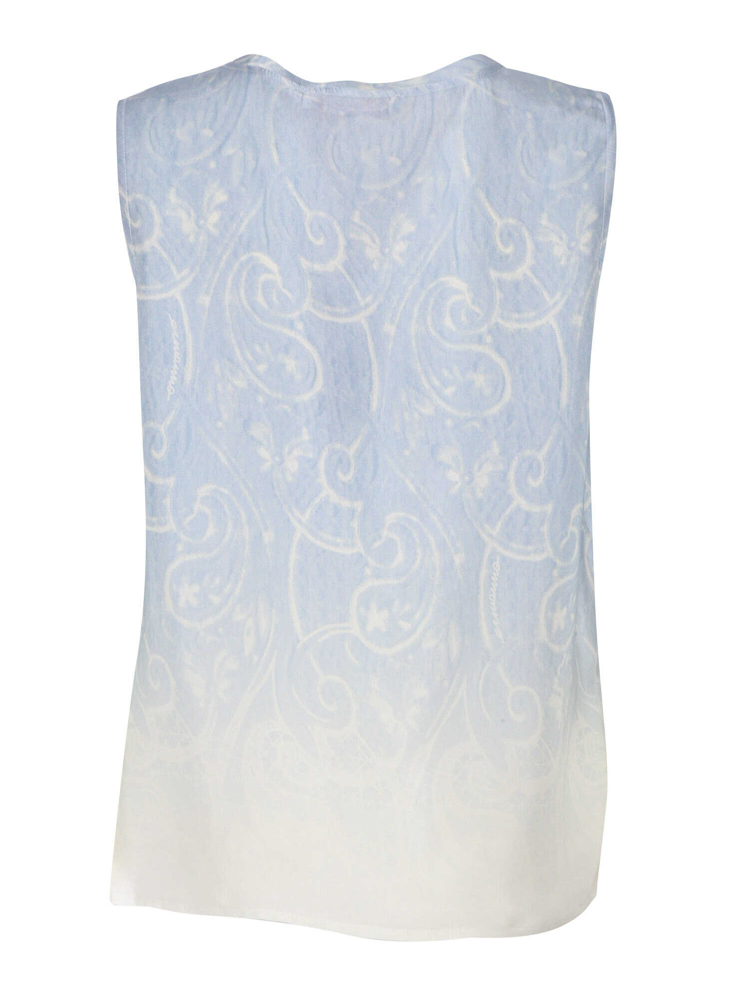 Sleeveless shirt with contrasting patterns and shaded colors, made in viscose, soft fit.