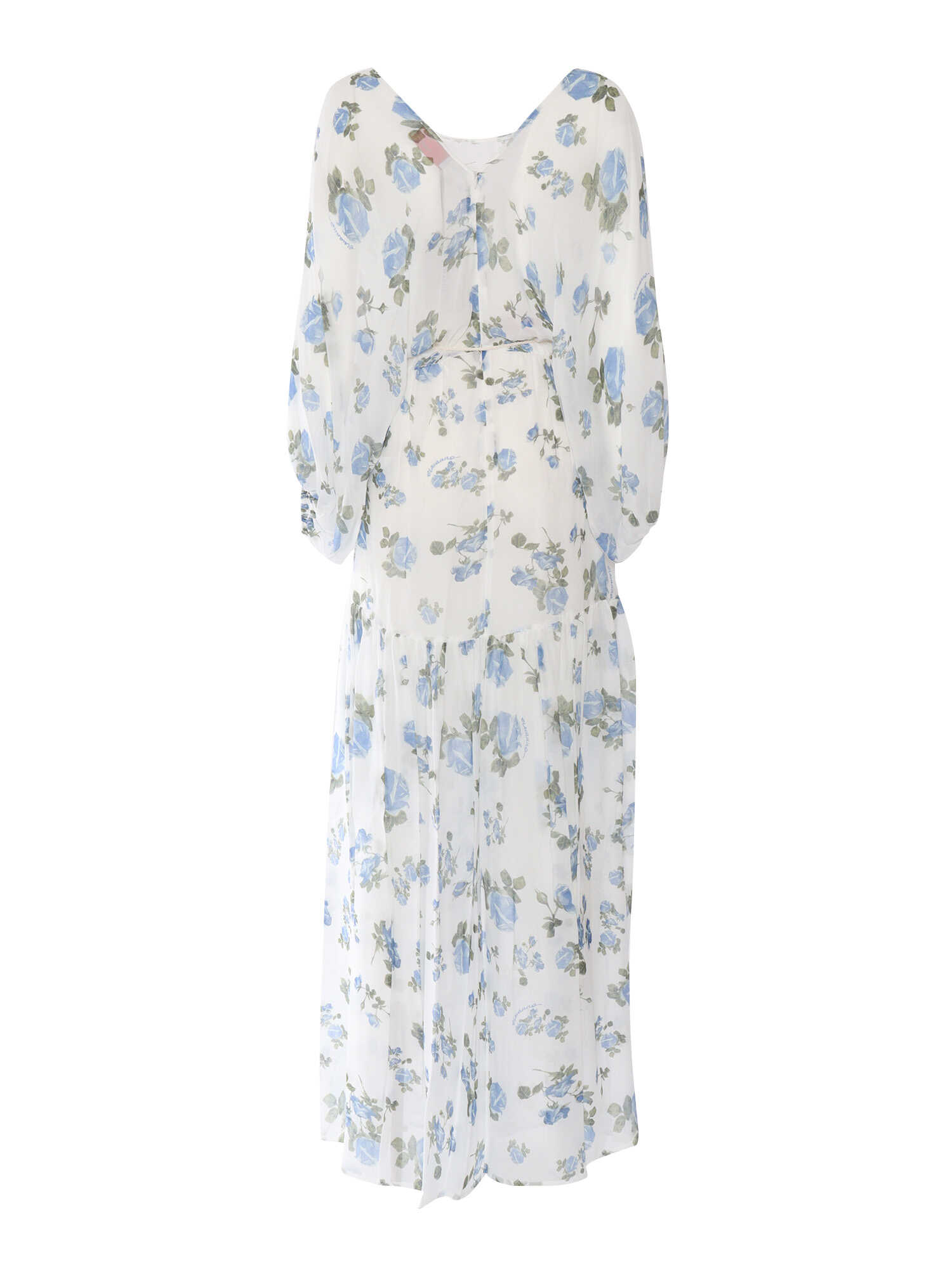 White long floral dress in viscose mixed, long sleeves, contrasting flowers print.
