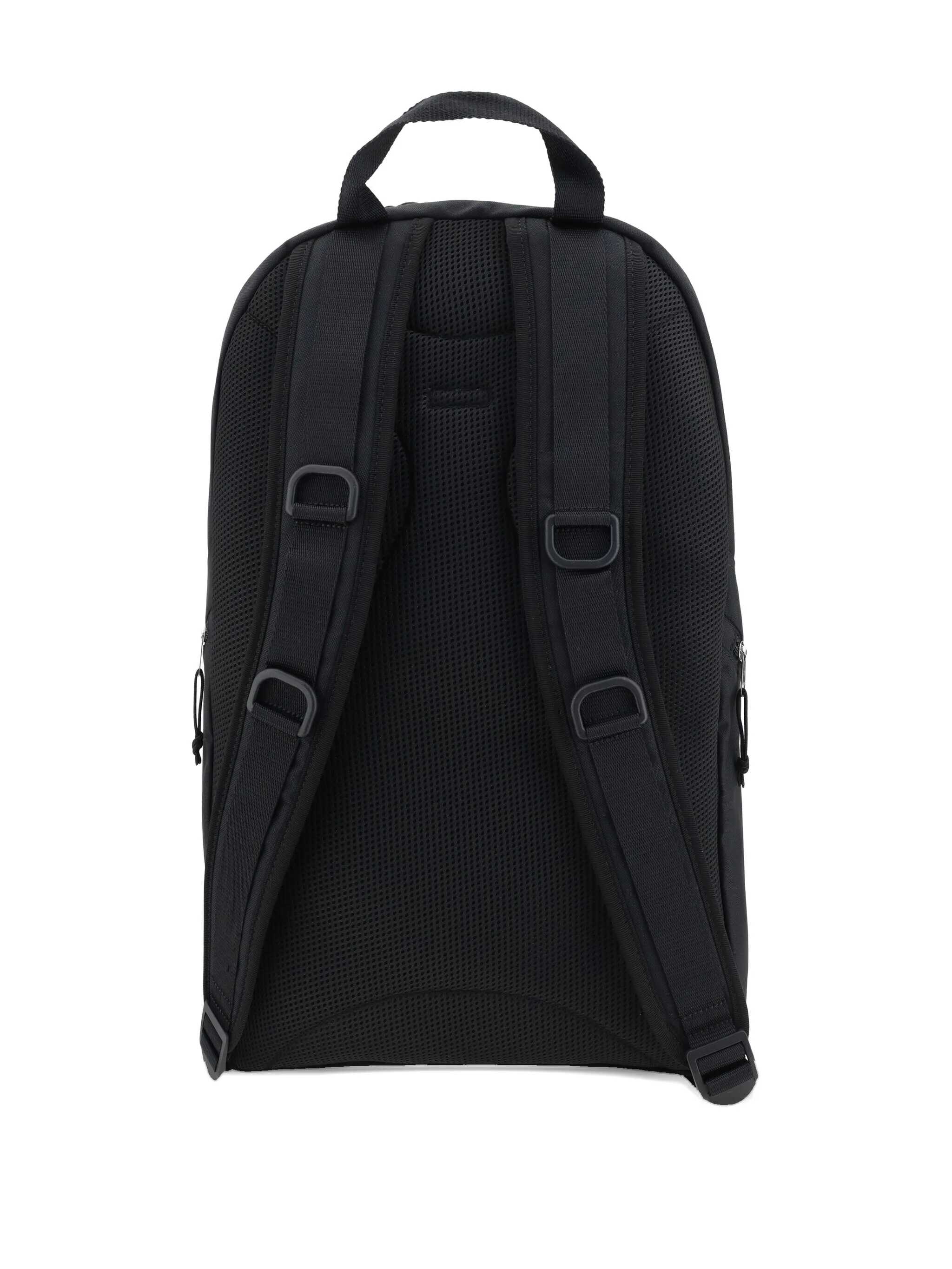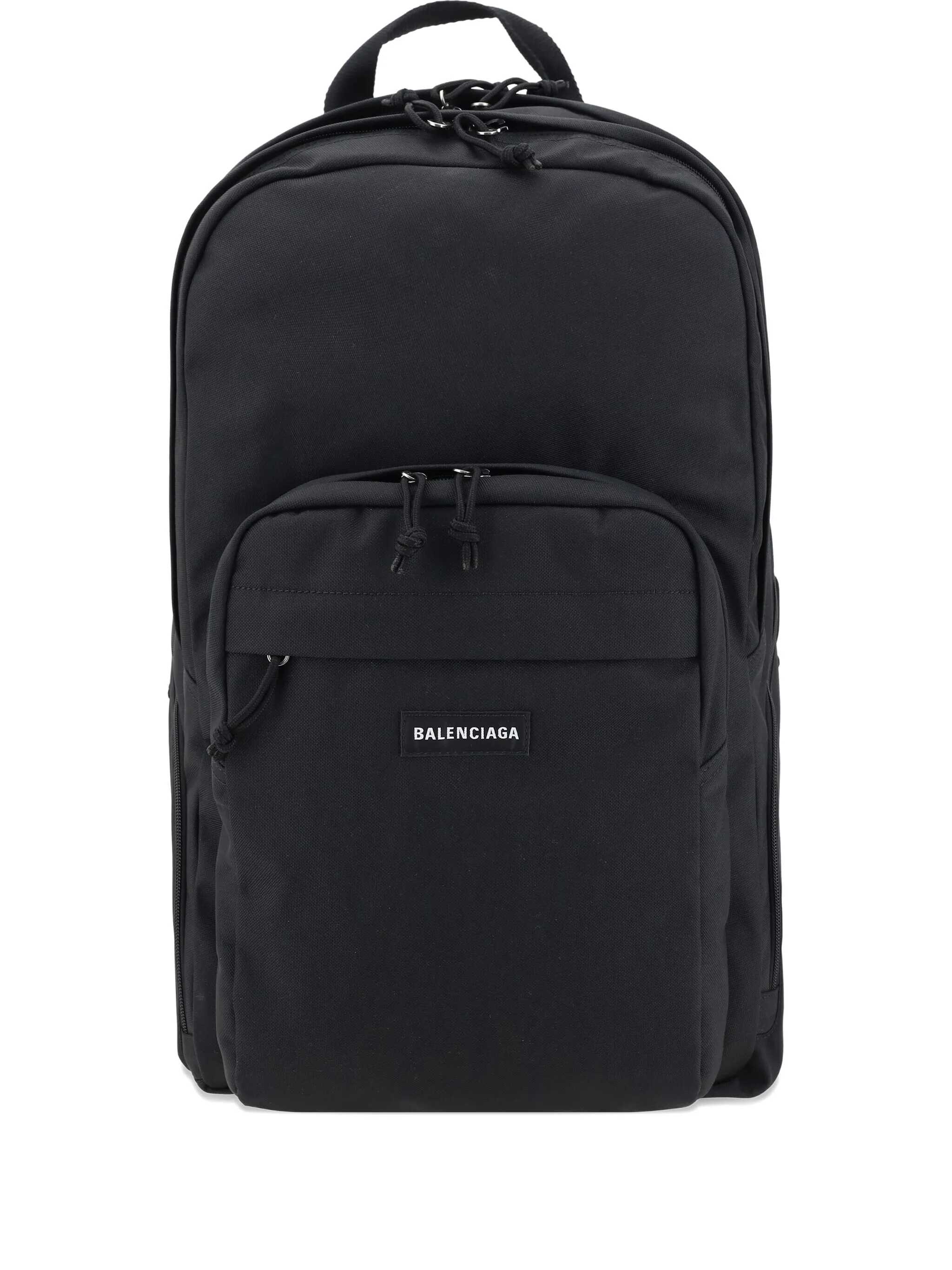 Balenciaga backpack made of black recycled nylon. Featuring silver-tone metal hardware, a double-zip closure, top handle, and adjustable shoulder straps. The interior is lined with tone-on-tone nylon. The design is completed with external zip pockets and the iconic front logo patch.