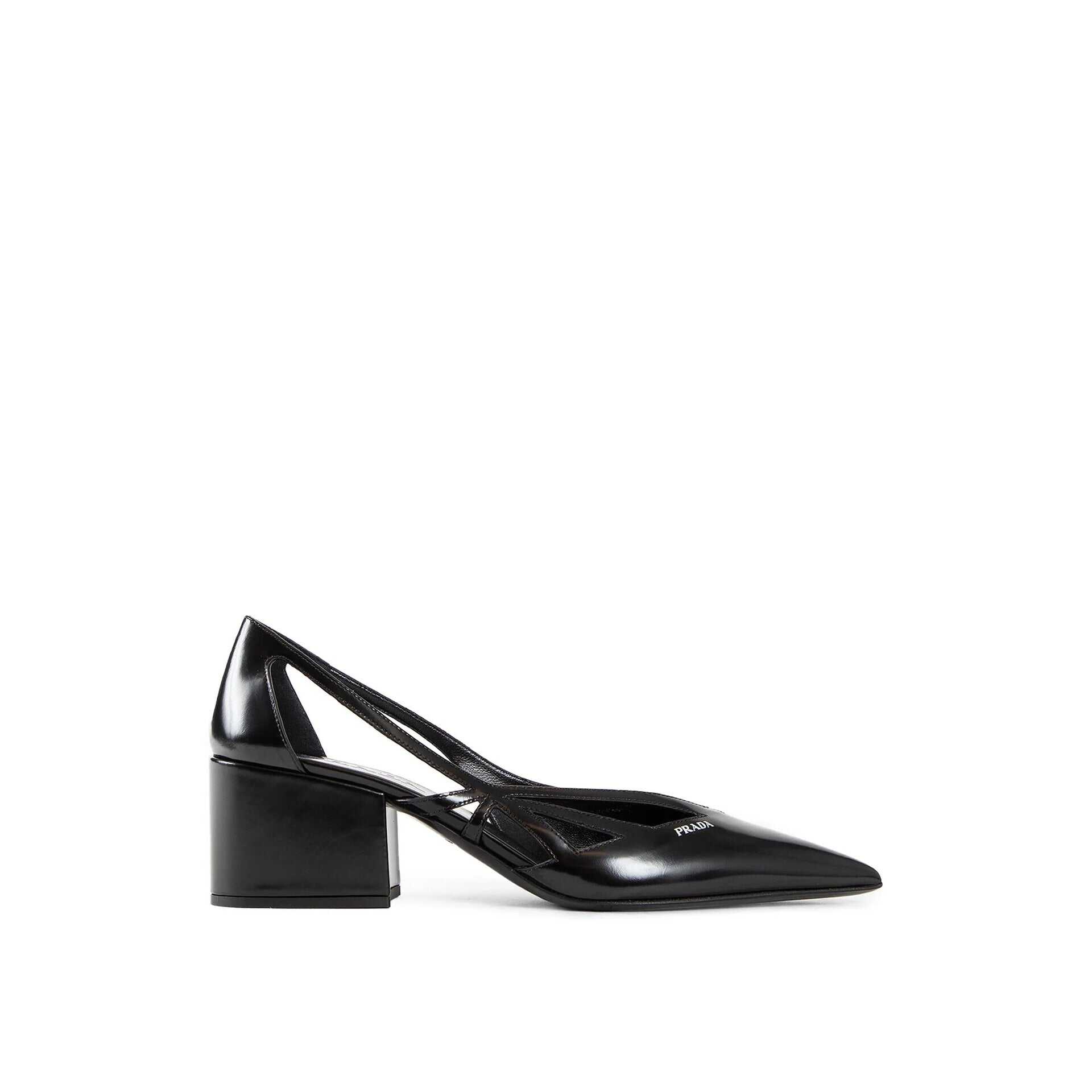 - Composition: 100% calf leather - Inner: Leather - Insole: Leather - Sole: Leather - Pointed toe - Cut-out detail - Branded insole - Side small logo detail - 5,5 cm square cuban heel - Made in Italy - Gender: WOMEN - MPN 1I741N055_F0002 - Code: SHO PR 2 PM SS25 12801