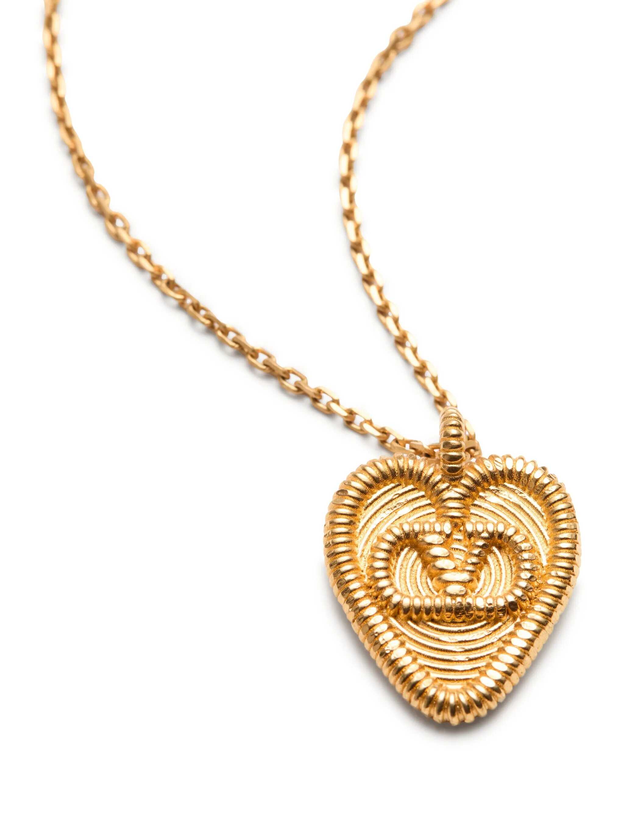 'Fil Perdu' necklace in metal with antique finish, pendant with heart-shaped pattern with hammered pattern and VLogo Signature detail, adjustable snap hook closure