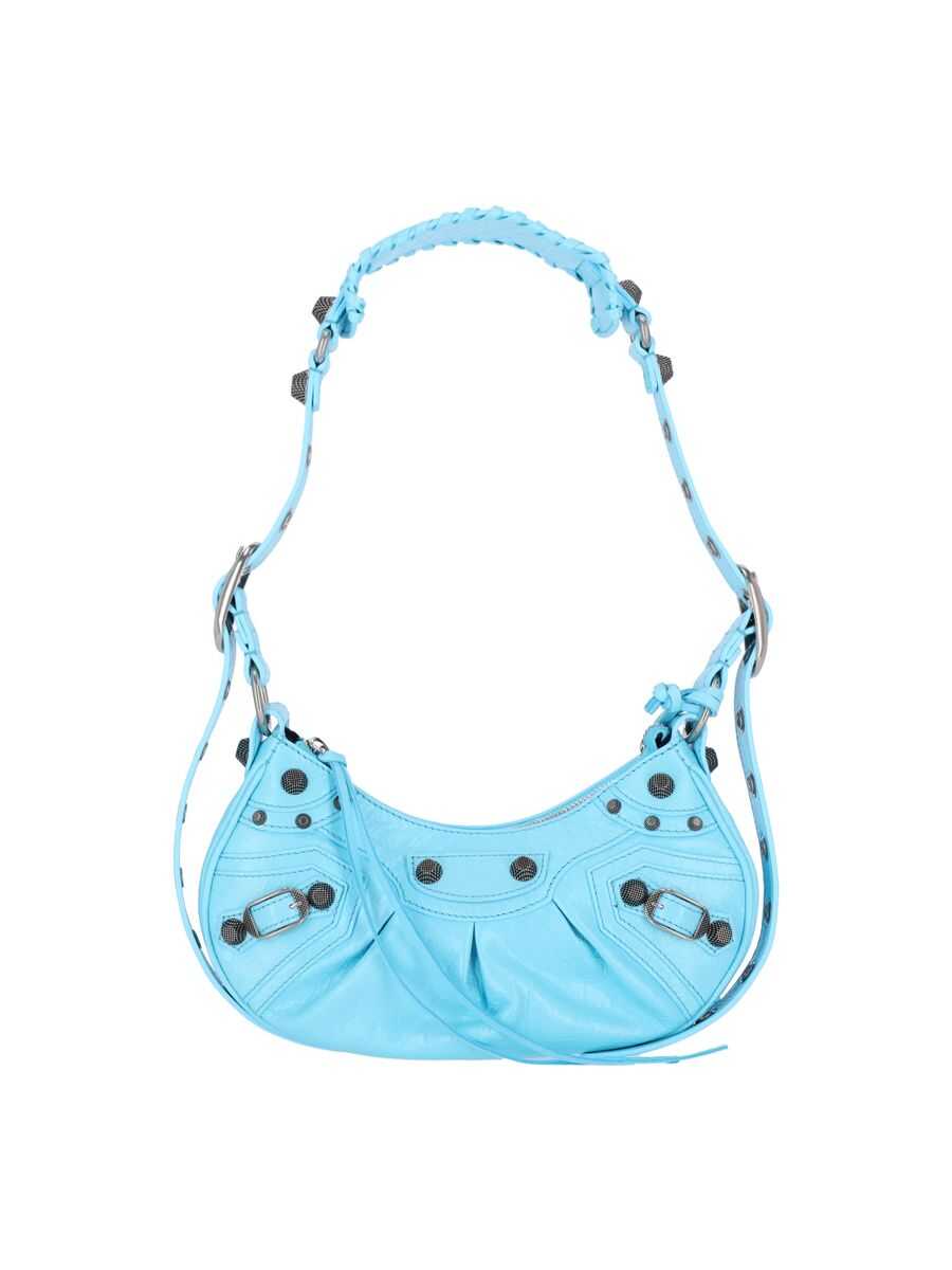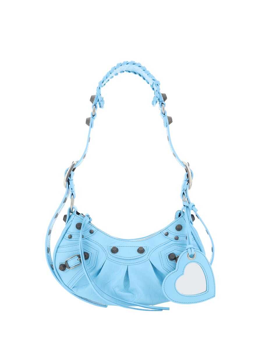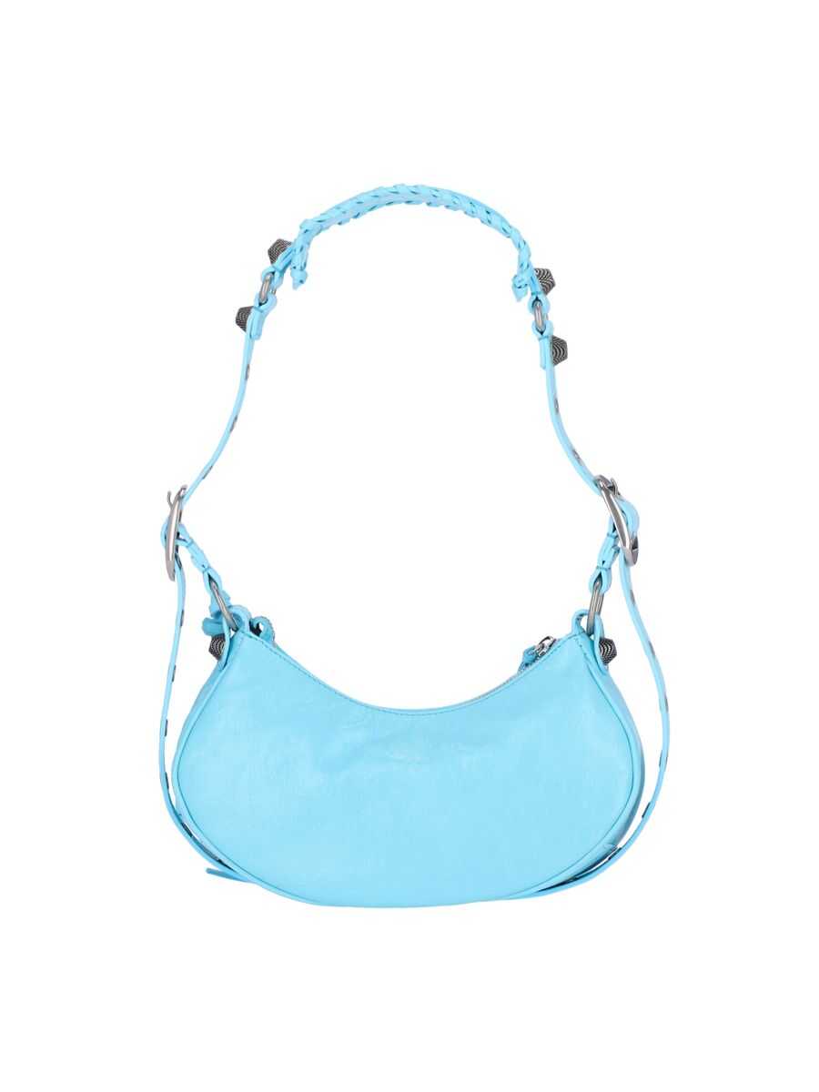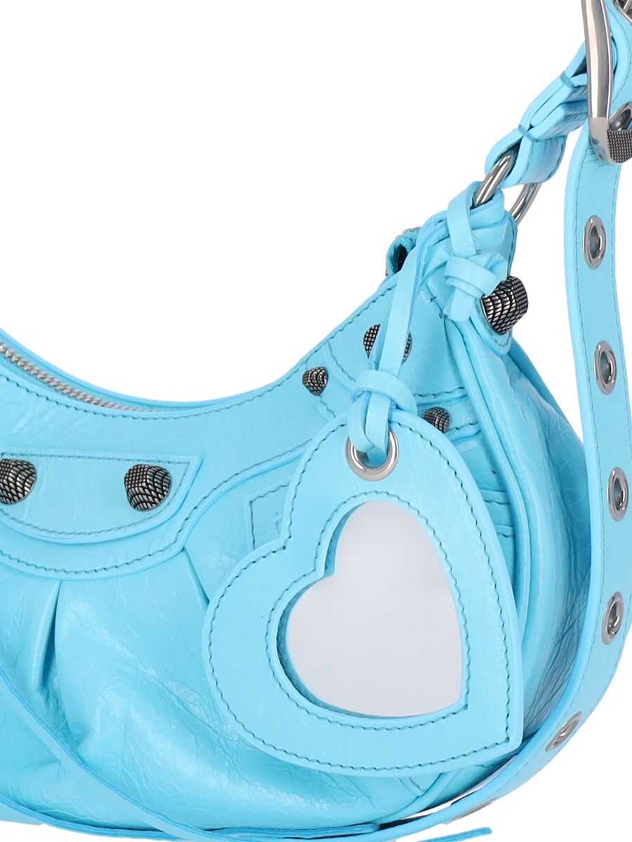 Blue shoulder bag, adjustable shoulder strap, zip closure and knotted tiralampo, antique silver finishes, removable heart mirror, mirror with a walenciaga logo tone on embossed tone, woven skin on the shoulder.