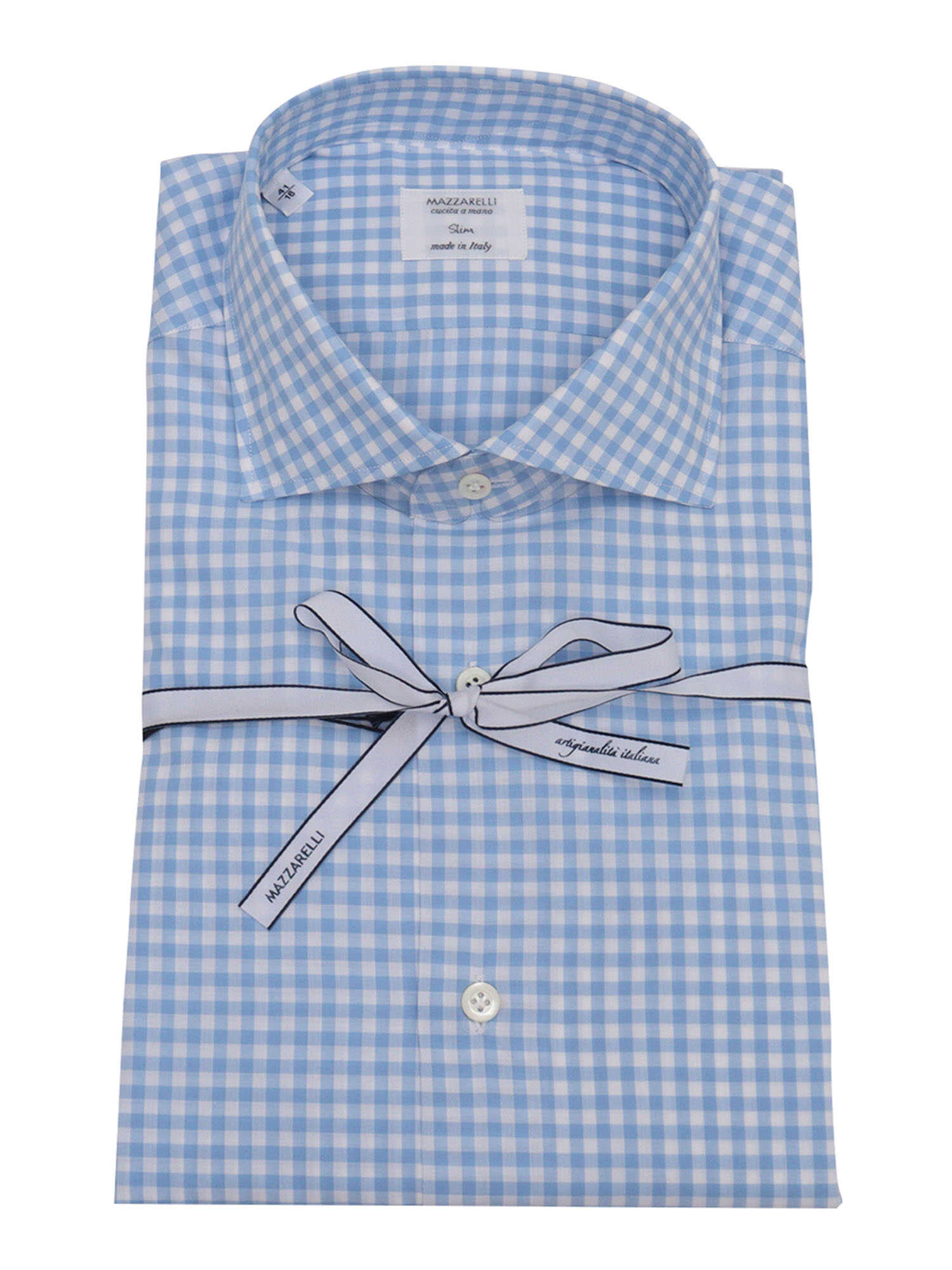 100% COTTON CHECKED SLIM FIT SHIRT IN WHITE AND BLUE