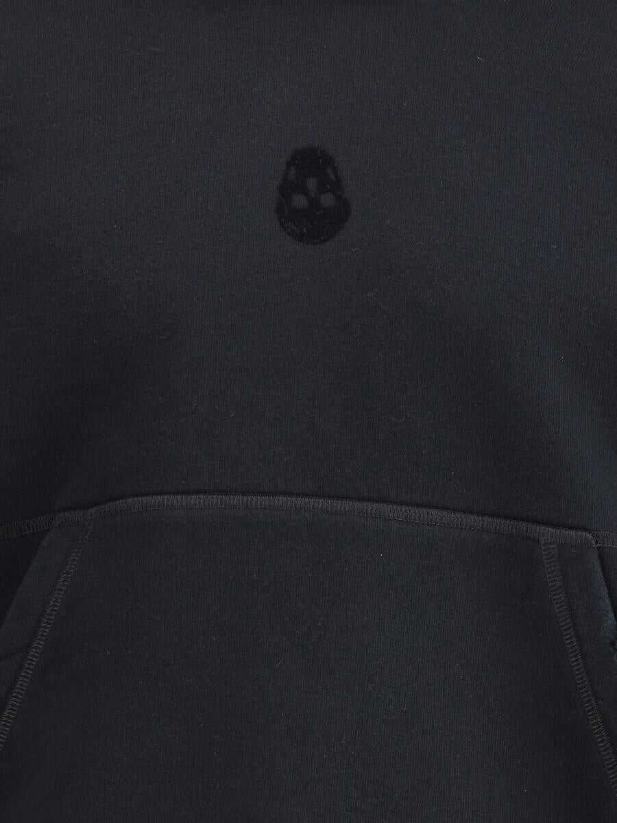 ALEXANDER MCQUEEN'S COTTON HOODIE IS A BOLD, CONTEMPORARY STYLE WITH A VINTAGE WORN-EFFECT DESIGN THAT GIVES IT A TOUCH OF ORIGINALITY AND CHARACTER. THE TONE-ON-TONE SKULL ON THE FRONT IS THE ICONIC DETAIL THAT REPRESENTS THE BRAND'S DISTINCTIVE AESTHETIC, WHILE THE KANGAROO POCKET ON THE FRONT ADDS PRACTICALITY AND FUNCTIONALITY. RIBBED CUFFS AND HEM ENSURE A COMFORTABLE FIT, WHILE THE OVERSIZED FIT MAKES THE SWEATSHIRT IDEAL FOR THOSE SEEKING COMFORT AND A RELAXED LOOK.