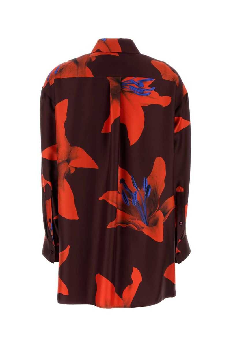 All-over 'Flame Lily' print silk twill shirt, button closure, long sleeves with cuffs and dropped shoulders, side slits