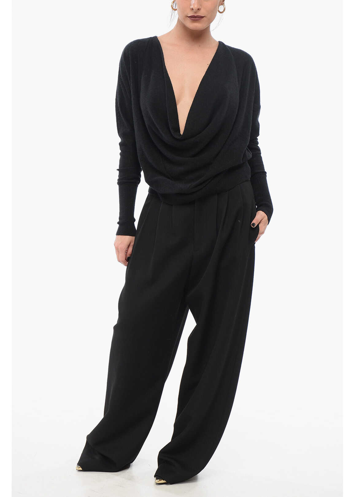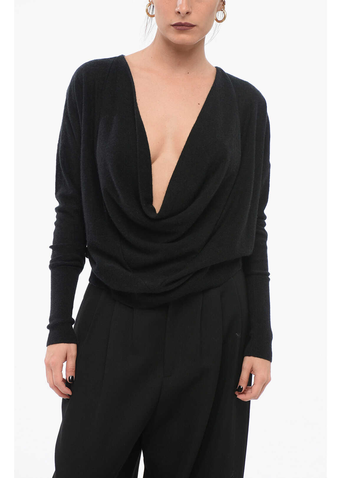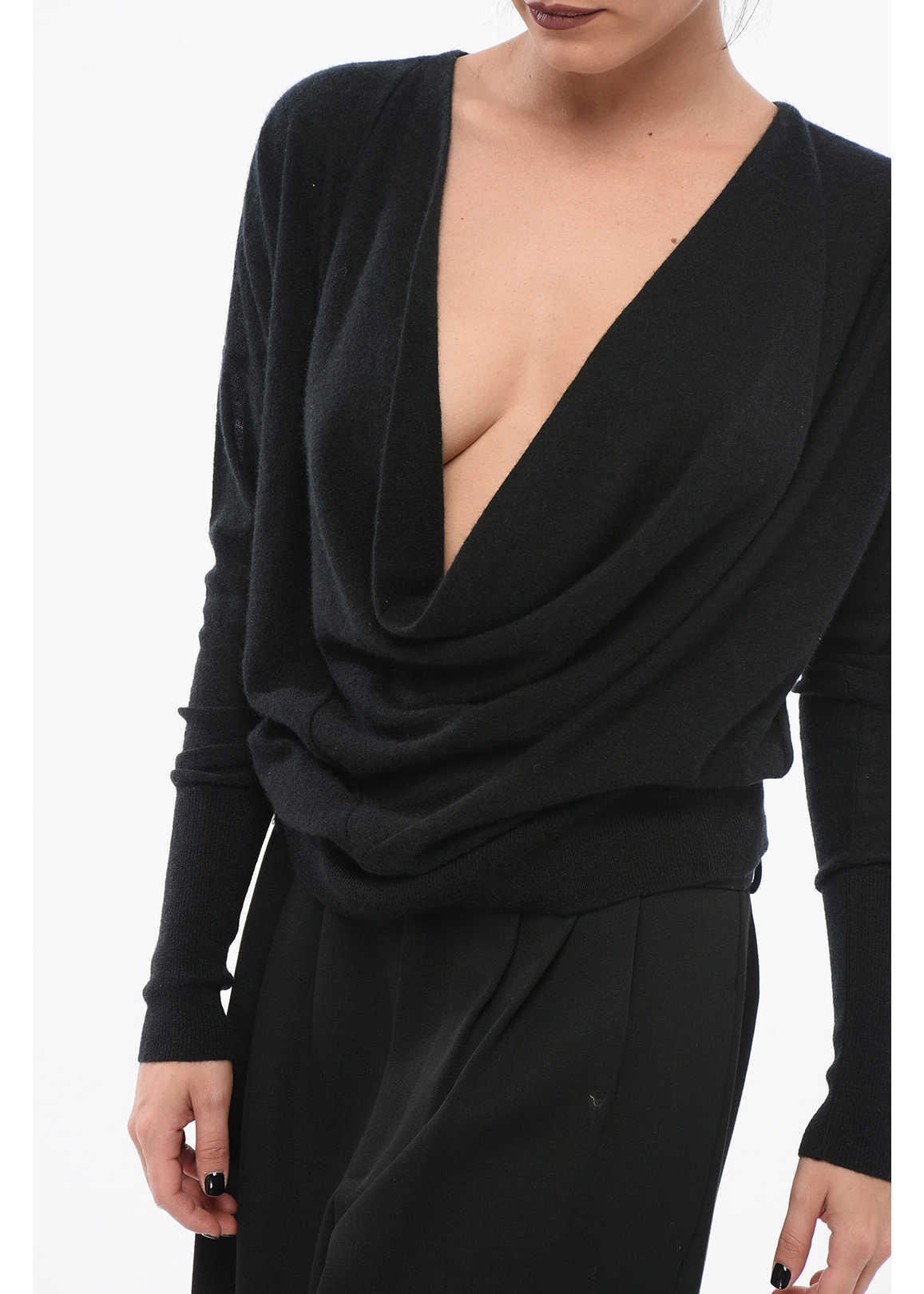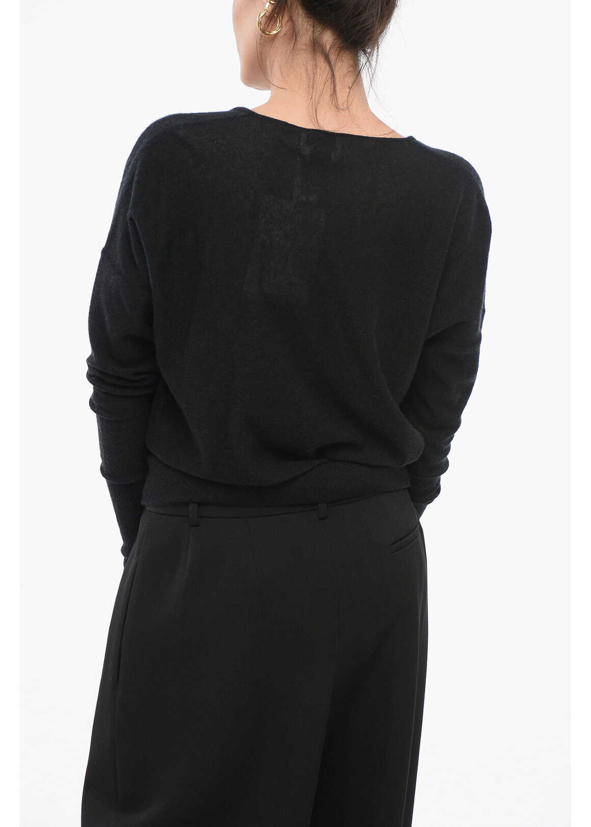 Silk-Cash Deep-Neckline Pullover