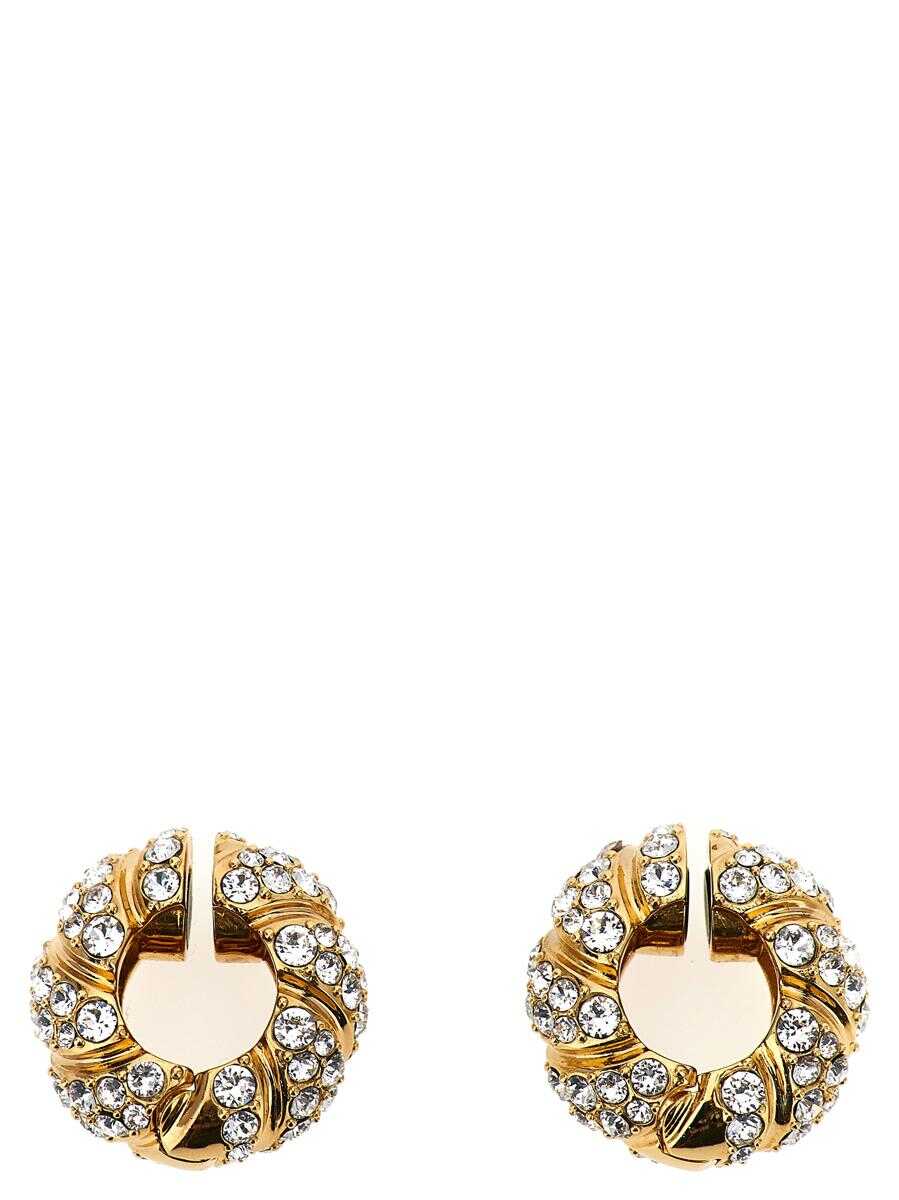 Gold metal 'Pas Plus' earrings with Swarovski® crystals appliqué, spring closure.