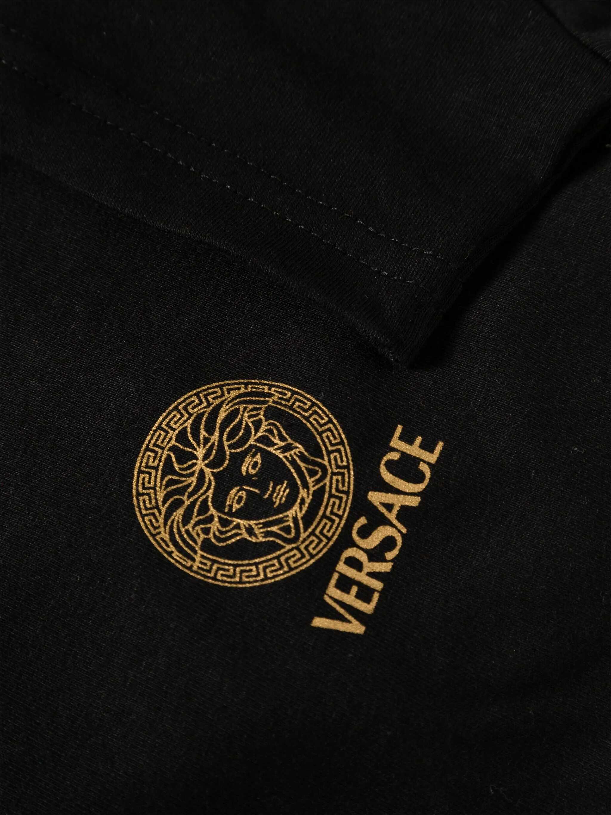 - Versace - T-shirt with gold logo print - Stretch cotton - Black - Short sleeves - Gold logo print - Men