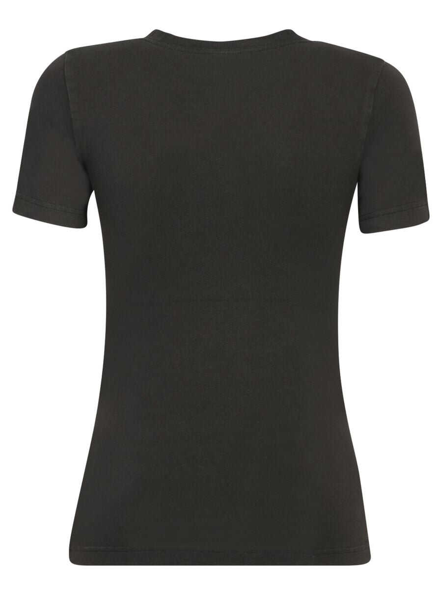 black cotton blend jersey texture crew neck logo print to the front short sleeves straight hem We've partnered