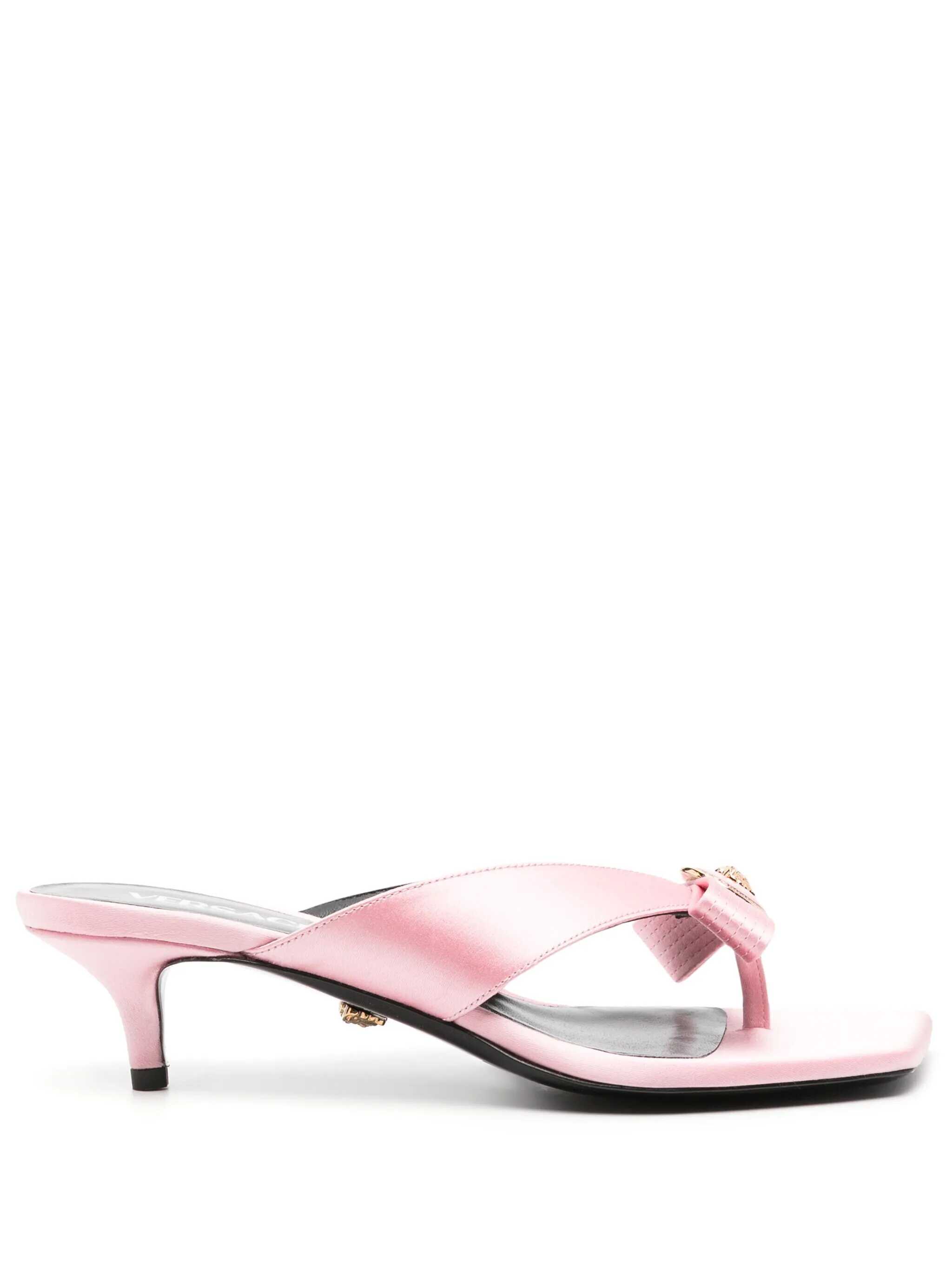 Pink satin Gianni Ribbon thong mules Heel height: 4,5 cm