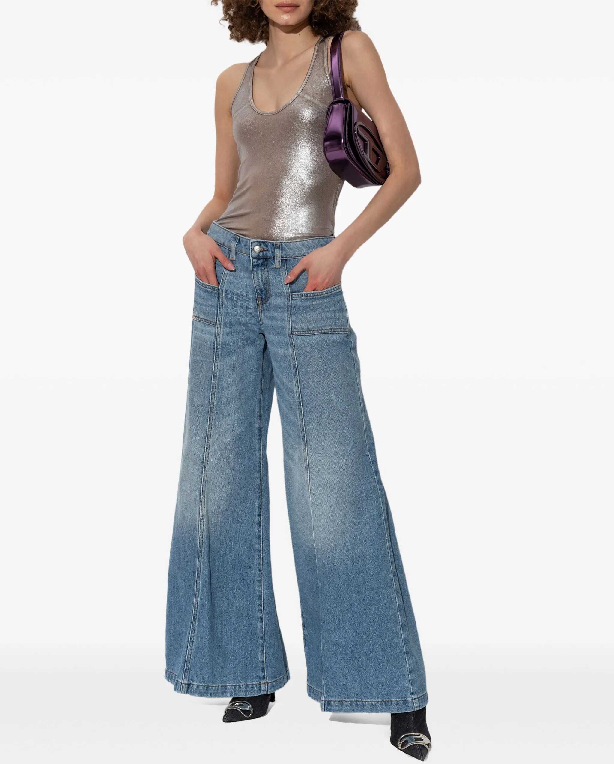 - FLARE FIT- 100% COTTON- MADE IN Mauritius- THE MODEL IS 180 CM TALL AND WEARS SIZE 26