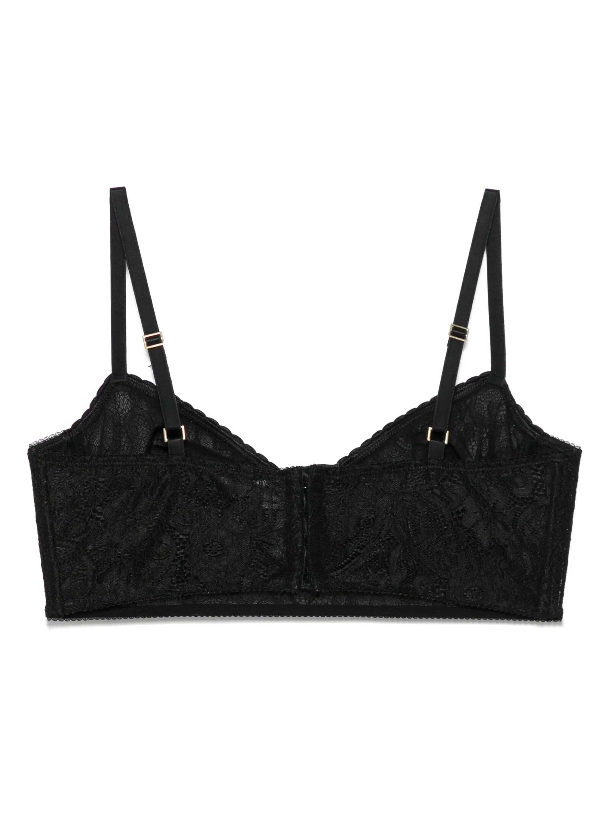 Black lace bra from Elisabetta Franchi featuring rear hook and eye fastening adjustable spaghetti straps moulded cup