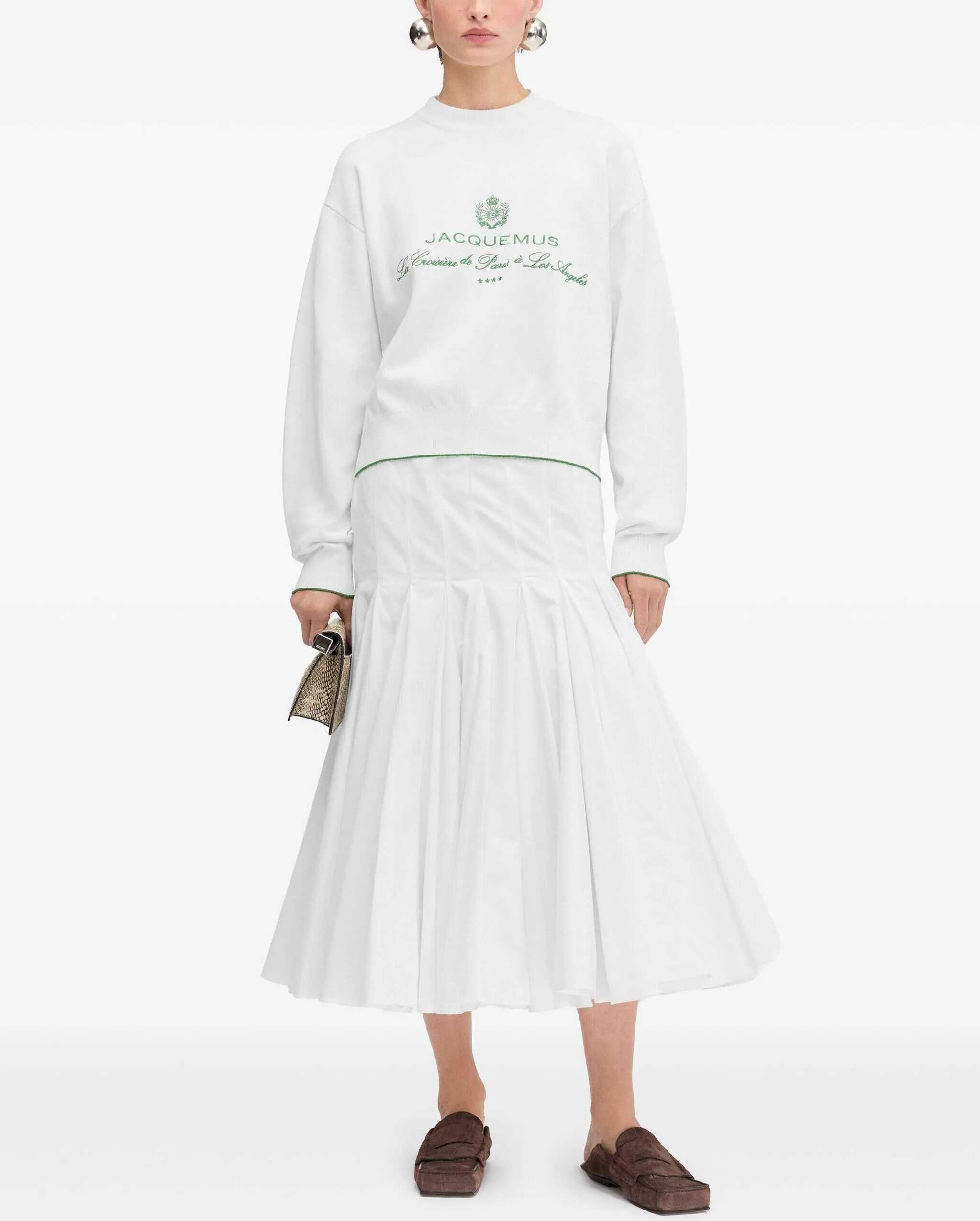 The La Maille Venice Sweater by Jacquemus is a sophisticated, minimalist piece perfect for a casual yet sophisticated look. The ribbed crew neck, along with ribbed hems and cuffs, ensure a comfortable, structured fit. The brand's iconic signature stitched on the front adds a distinctive and recognizable touch. With its simple yet elegant design, this sweatshirt is a must-have for those looking for a versatile, quality garment that won't go unnoticed.