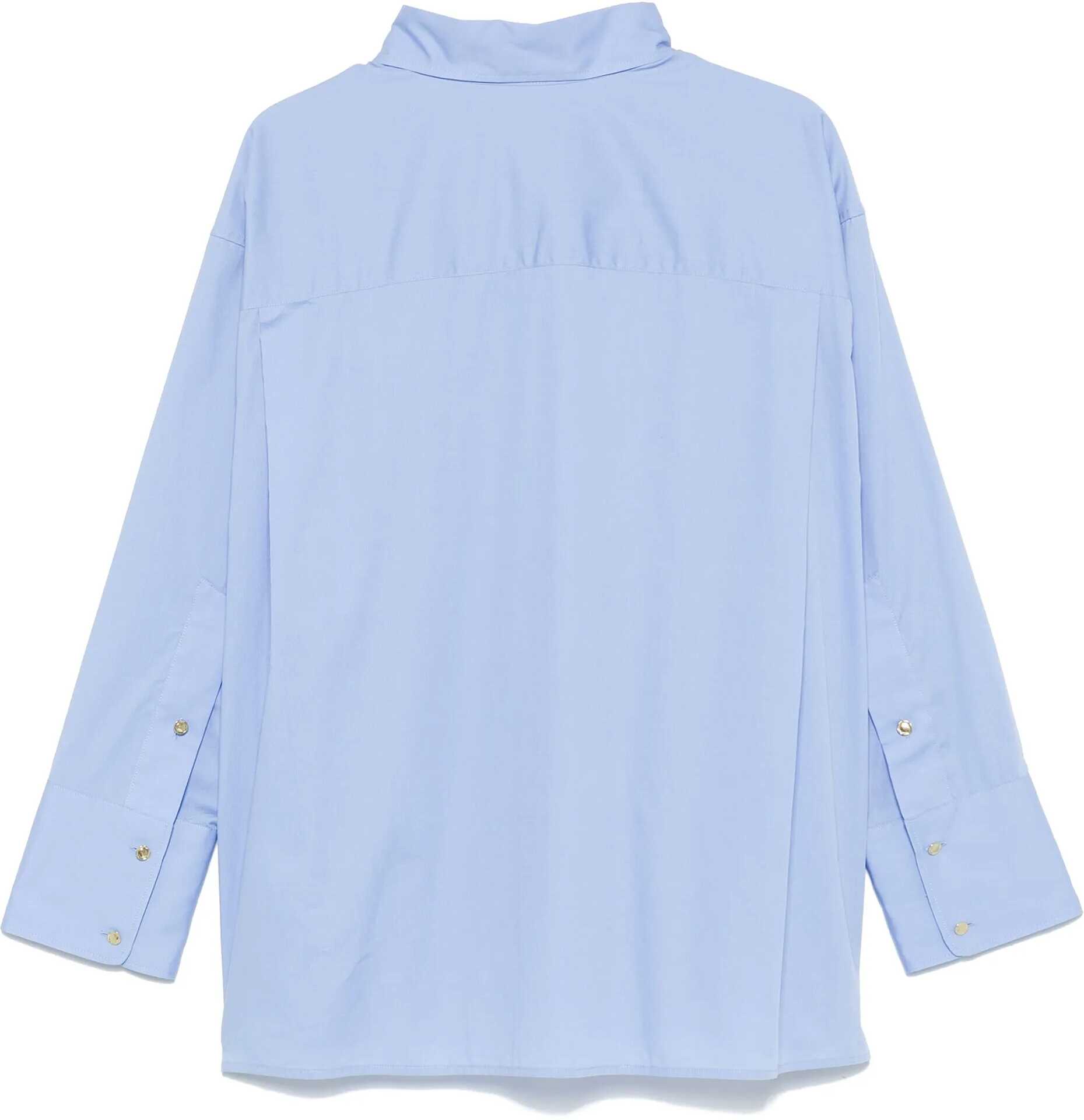 The Nathalie cotton Shirt by Darkpark features a classic collar and a button front closure. The cuffs are adjustable with buttons, and there is a patch welt pocket on the front. The oversize fit gives the garment a relaxed, modern look.