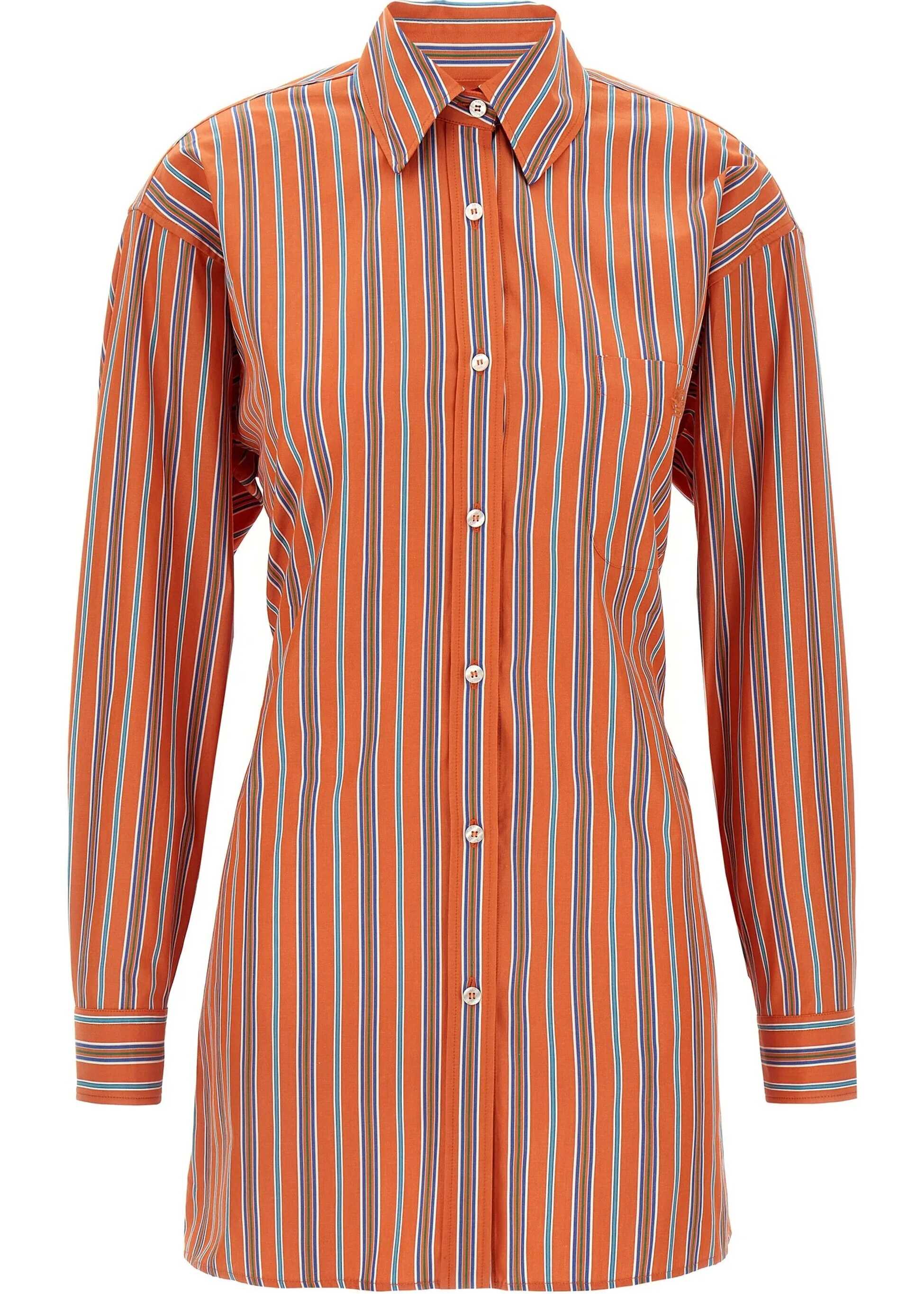 Etro's cotton Shirt combines style and sophistication with its striped design. It features a classic collar, front button closure and dropped sleeves for a touch of relaxed elegance. On the front, a welt pocket with embroidered logo adds a distinctive detail. The cuffs are adjustable with buttons, while on the back, a refined knot detail with two slits stands out, giving movement and originality to the garment.