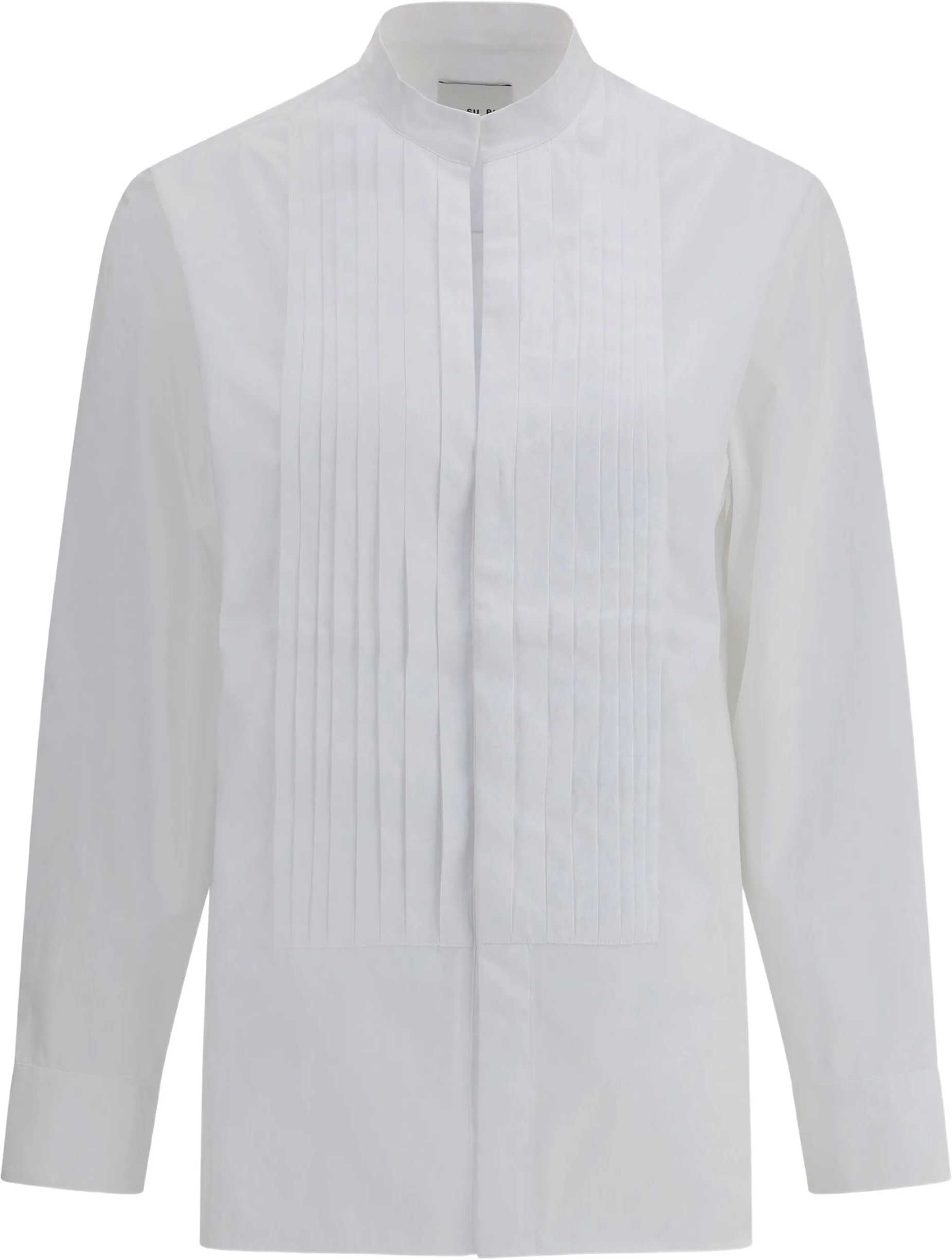 Sa Su Phi's Petra Tuxedo Shirt by Sa Su Phi is an elegant and refined garment designed for a sophisticated look. The front closure with concealed buttons gives a clean, minimalist look, while the mandarin collar adds a touch of modernity and class. The pleat detail on the front enriches the design with an element of texture that enhances the silhouette, creating an elegant and structured effect. Perfect for those seeking a versatile shirt with a distinctive style, ideal for both formal occasions and more contemporary looks.