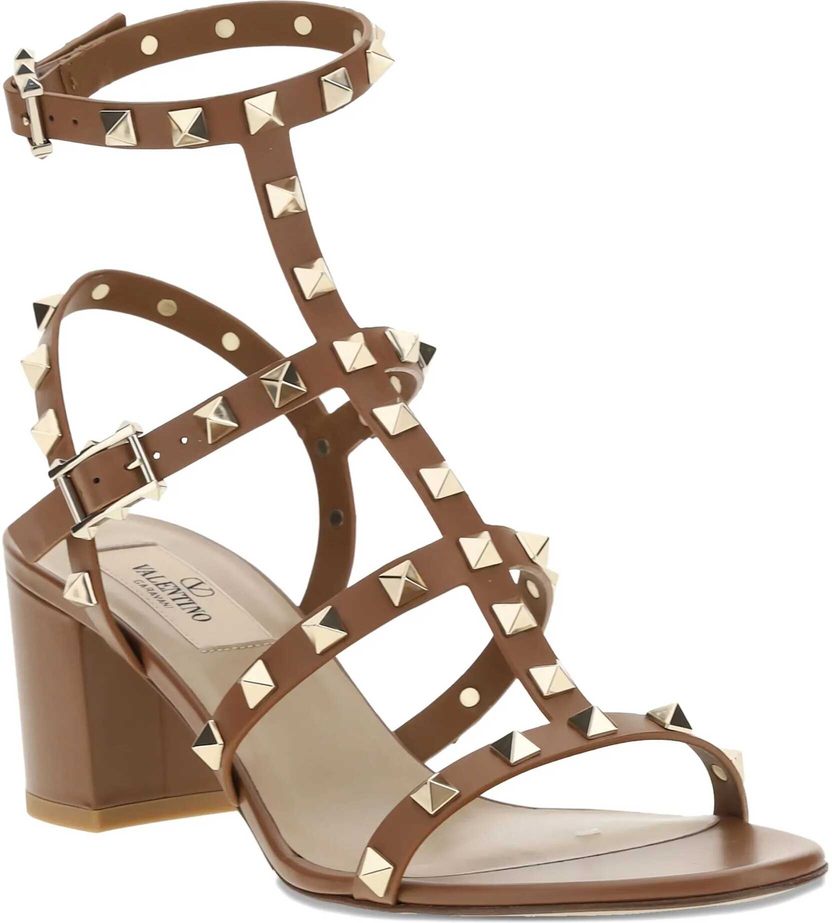 Valentino Garavani's leather Rockstud Sandals are the perfect expression of bold, sophisticated elegance. The round toe and adjustable ankle lap strap closure via a side buckle offer a secure, customized fit. The chunky leather heel lends stability and comfort, while the iconic all-over applied Rockstud studs add a distinctive and gritty touch, making these sandals a true style statement. The branded insole completes the design with a luxurious detail.
