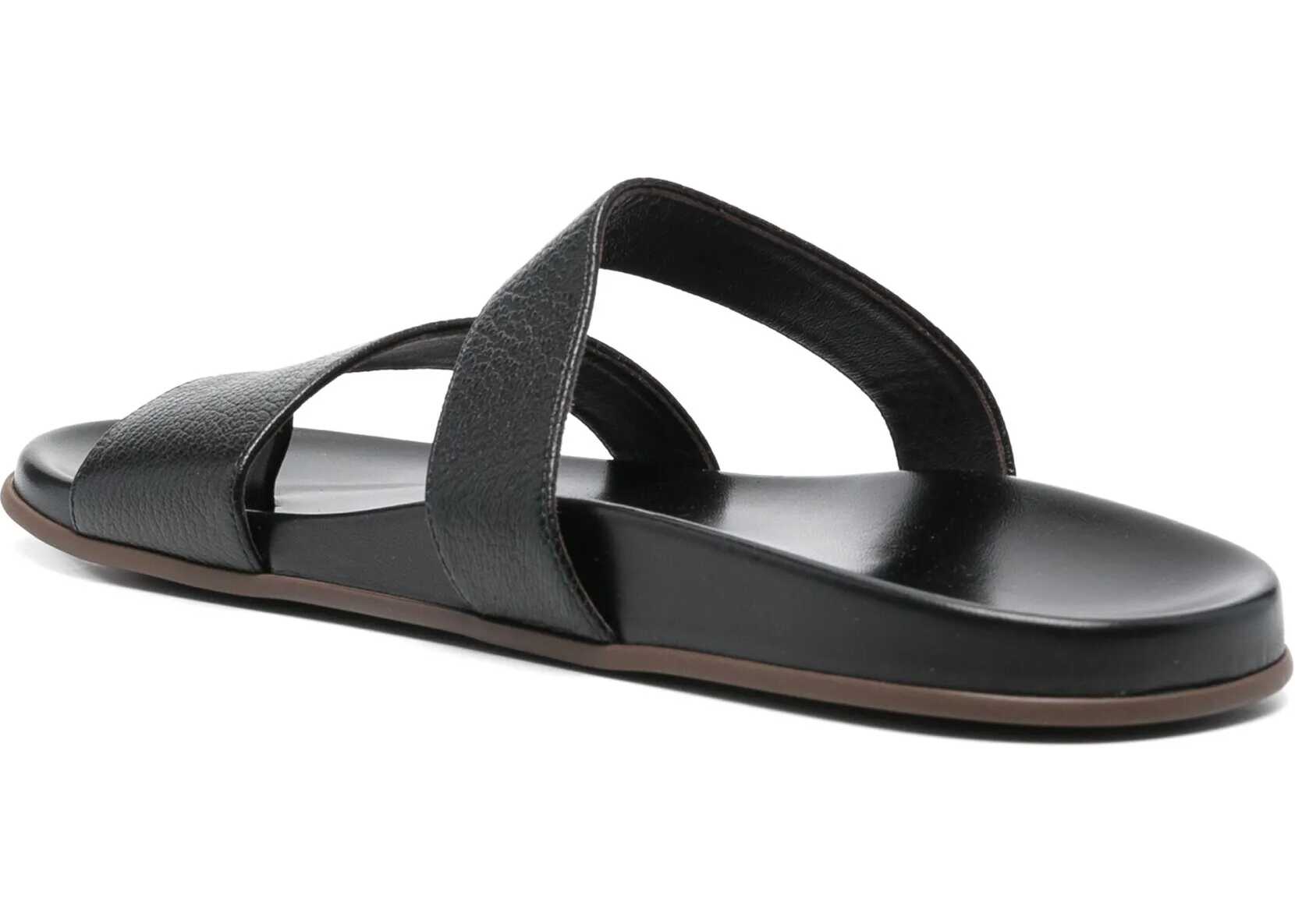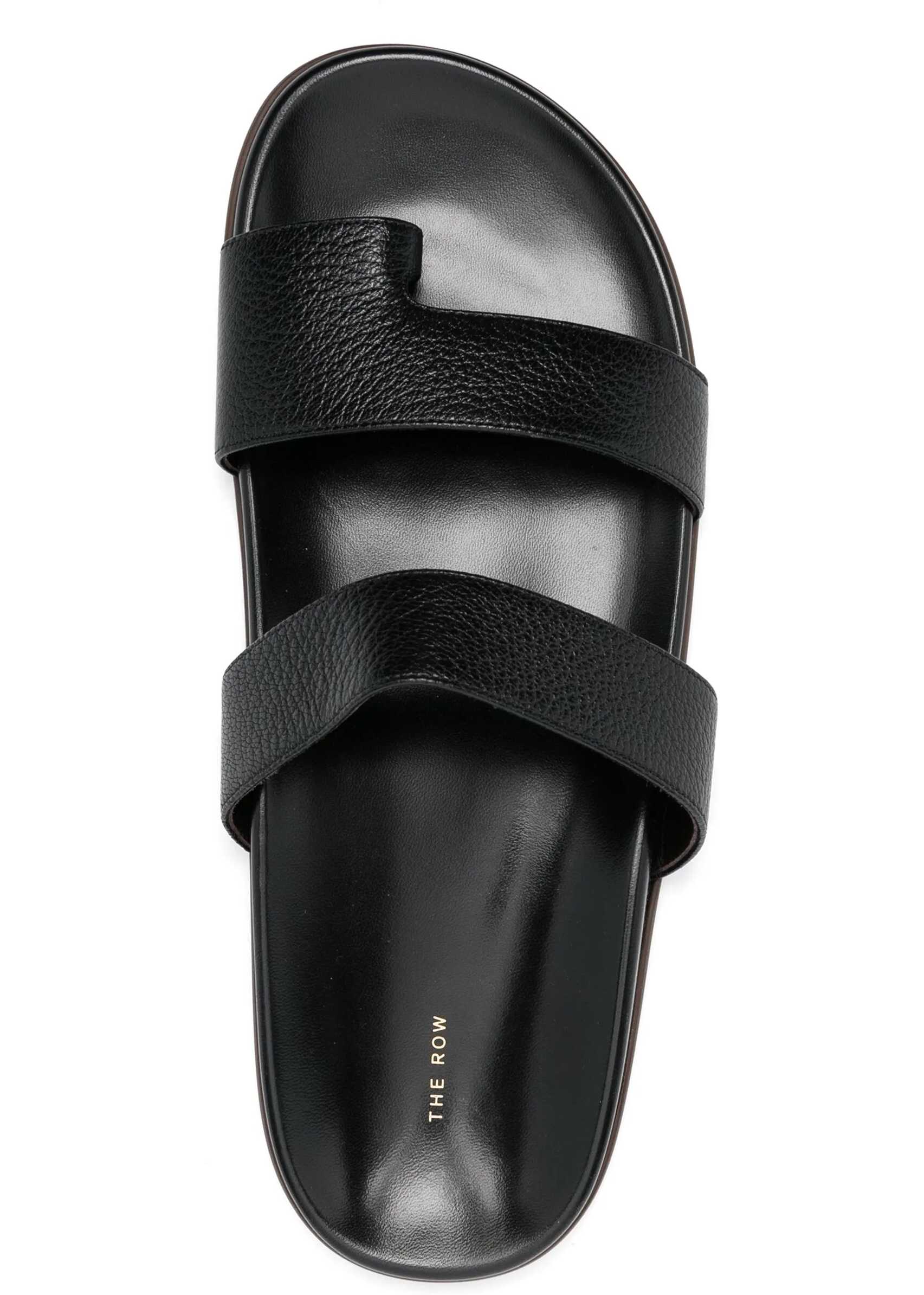 The Row's Hugh Sandals are a sophisticated and comfortable design made from grained calfskin leather. The double-strap design, combined with the added band at the toe, creates a sleek, modern look. The ergonomic insole ensures comfort during wear, while the rubber sole offers stability and durability. Perfect for those looking for a versatile sandal that combines style and functionality.