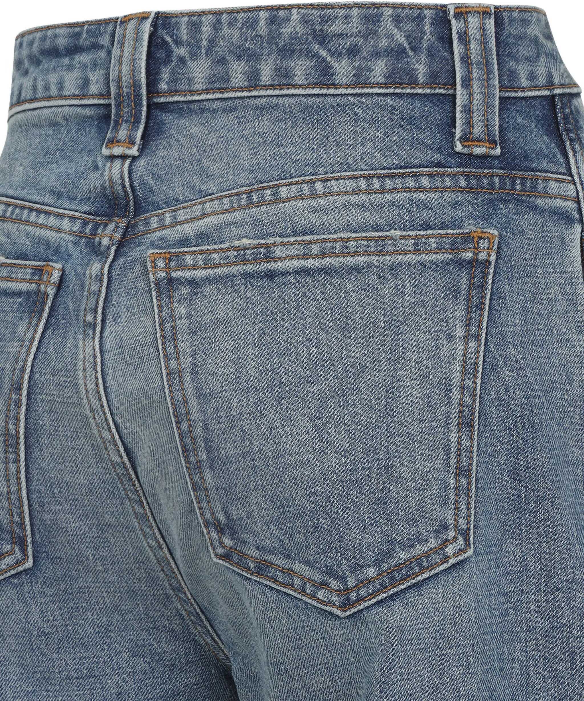 Khaite's cotton Dane Jeans are a wide-leg, five-pocket style with a mid-rise waist and front button and zipper closure. Belt loops at the waistband allow for customization of the fit.