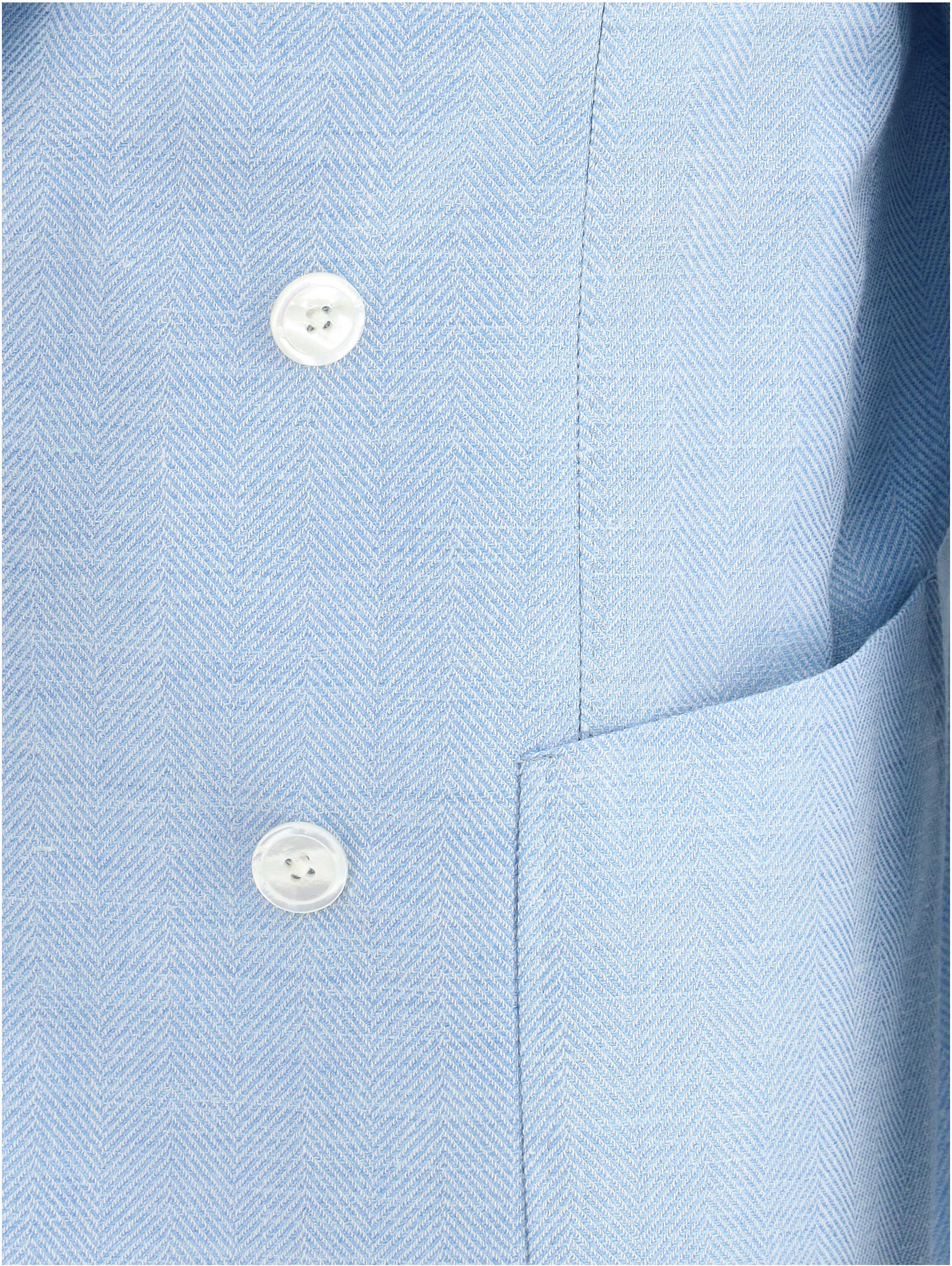 Gi Capri's virgin wool Blazer is an elegant and sophisticated piece with a peaked lapel that adds a touch of class to the design. The double-breasted front closure lends structure and sophistication, while the two patch welt pockets on the front offer practicality without compromising style. Two slits at the back provide added comfort and freedom of movement. Perfect for a formal look or for adding a touch of elegance to a more casual outfit.