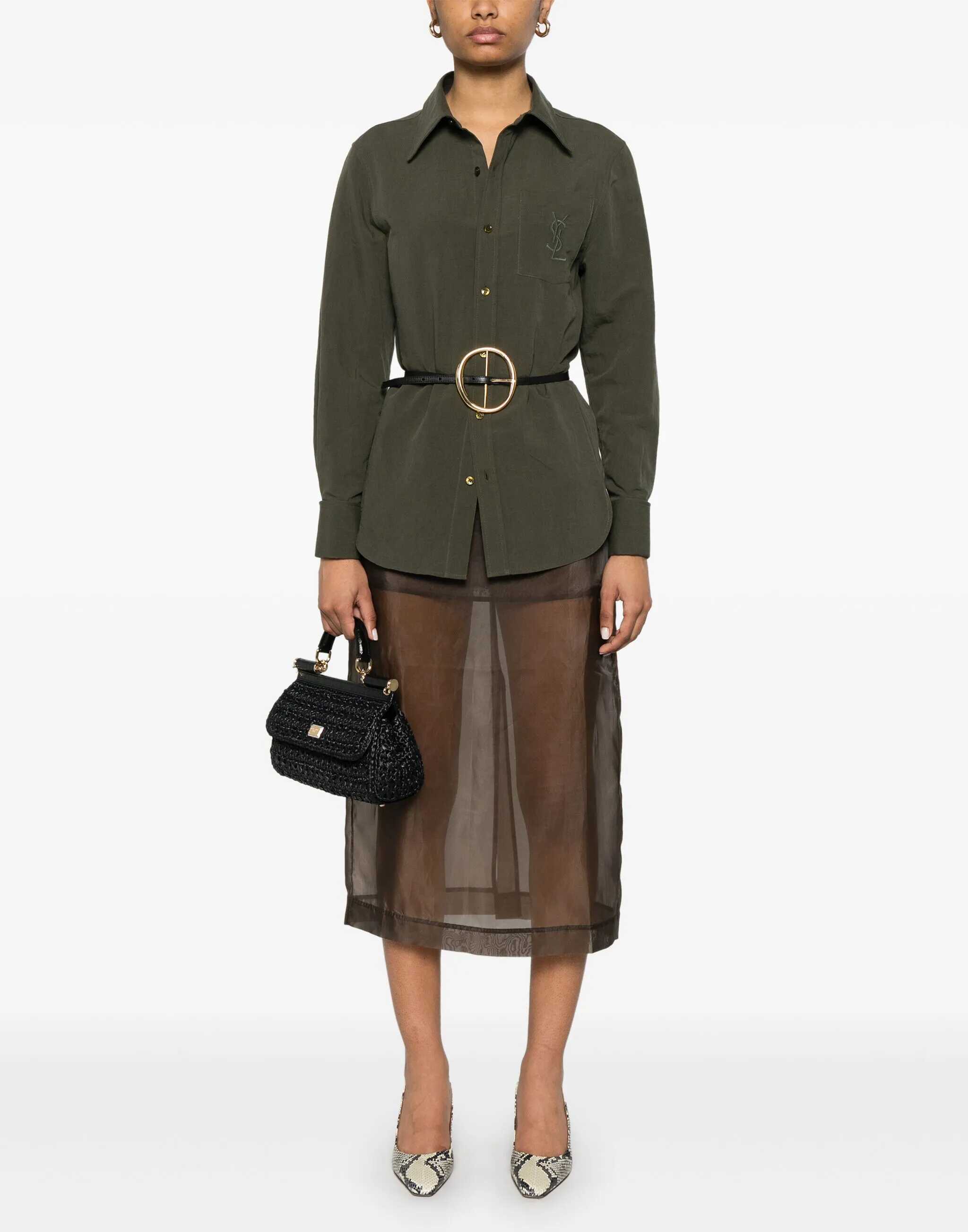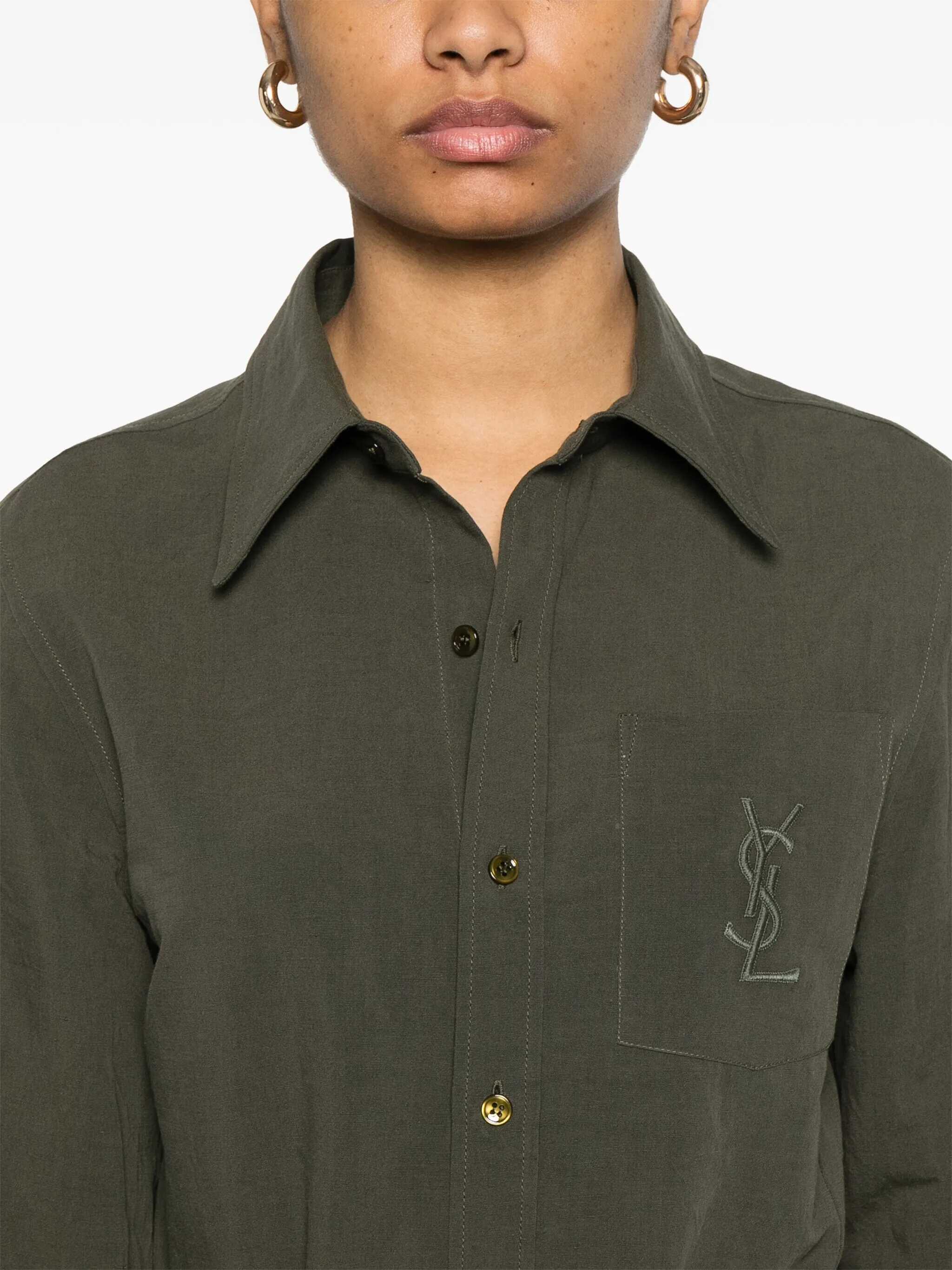 Saint Laurent's cotton linen Shirt is an elegant and sophisticated piece with a classic collar that lends a touch of sophistication. The front button closure adds practicality and style, while the welt pocket with iconic tone-on-tone YSL embroidery detail lends a distinctive and recognizable accent. Appliqué cufflinks complete the design, adding a touch of class and formality to the garment.