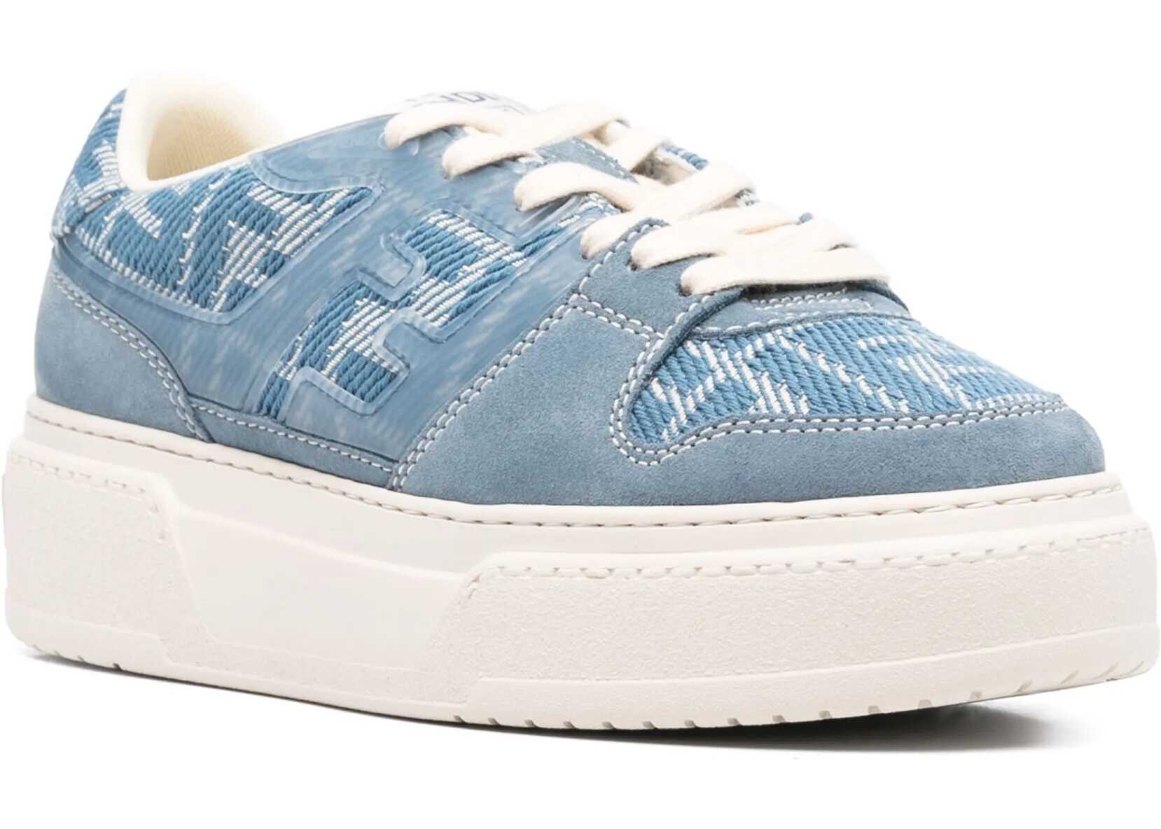 Fendi's fabric Sneakers feature a round toe and suede details that add a touch of elegance to the sporty design. The lace-up front closure ensures a secure and customizable fit. The wedge sole offers extra comfort, while the Fendi monogram detail on the heel adds a distinctive and luxurious element. The jacquard weave with the brand's iconic FF motif completes the design, giving it a modern and recognizable look.