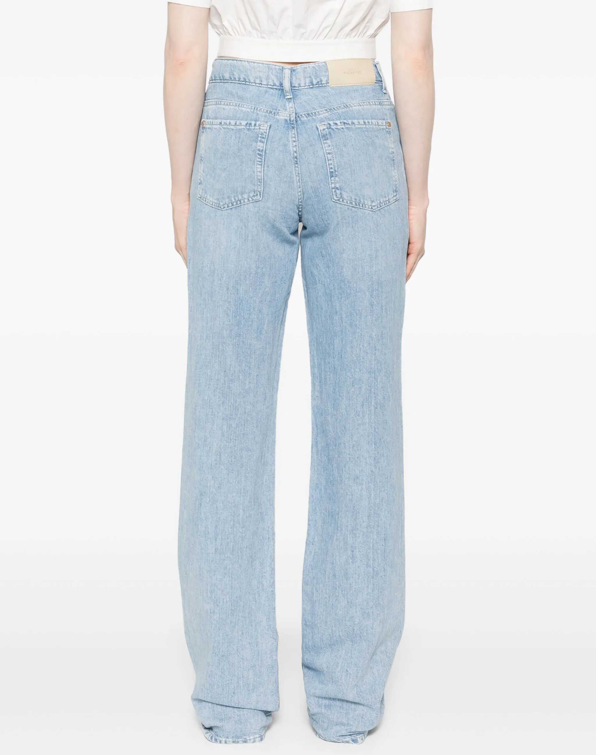The Tess Jeans by 7For are a straight fit, featuring a front zipper and button closure for a comfortable and secure fit. The five-pocket design and belt loops at the waist add practicality and functionality. The appliquéd logo patch on the back completes the look with a distinctive touch, making these jeans a versatile and modern garment for any casual occasion.